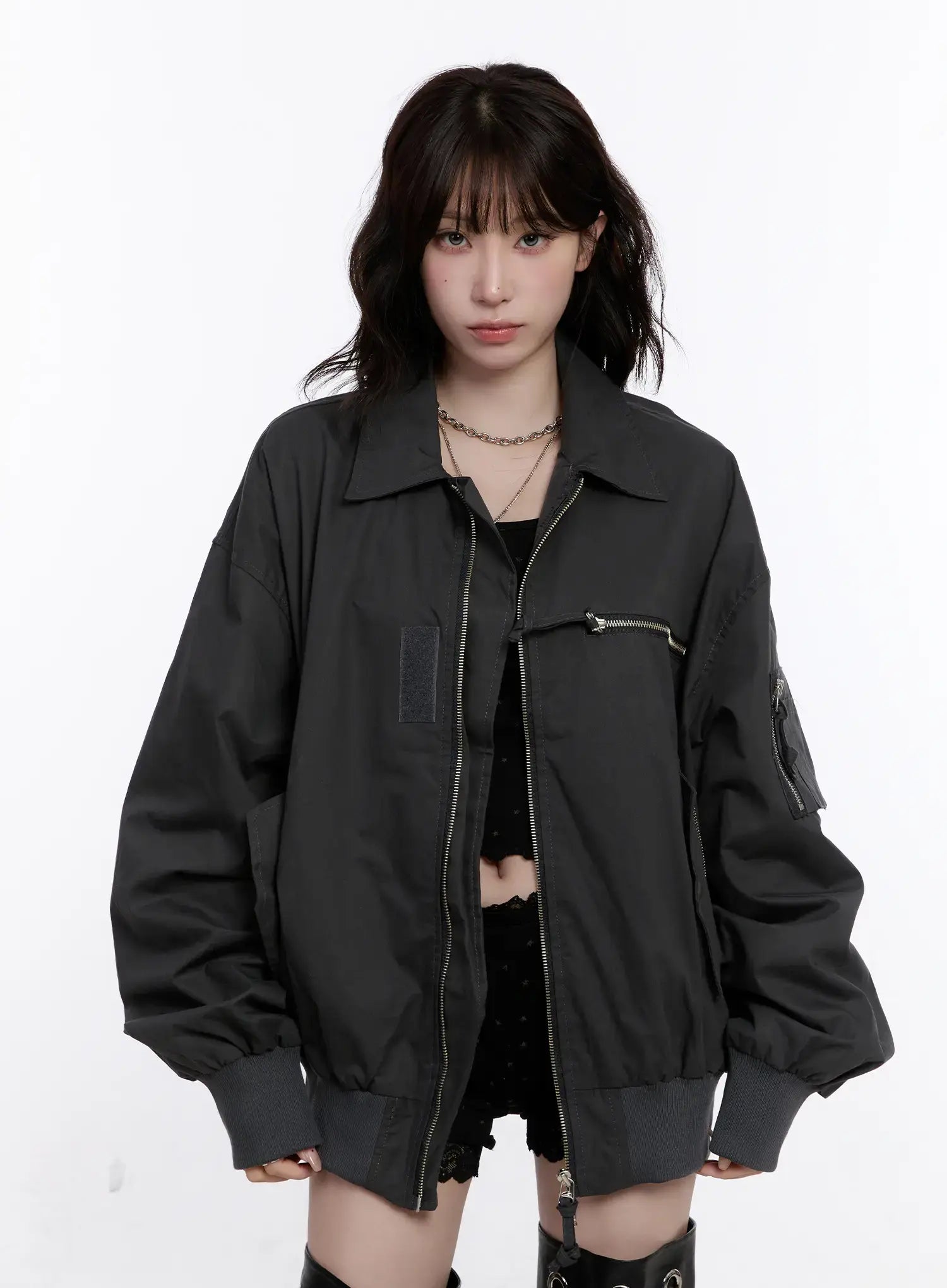 Oversized Zip-Up Bomber Jacket CS530