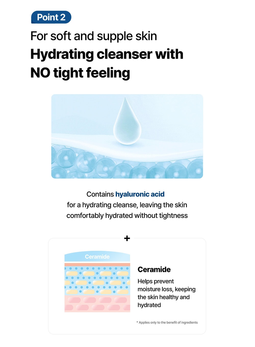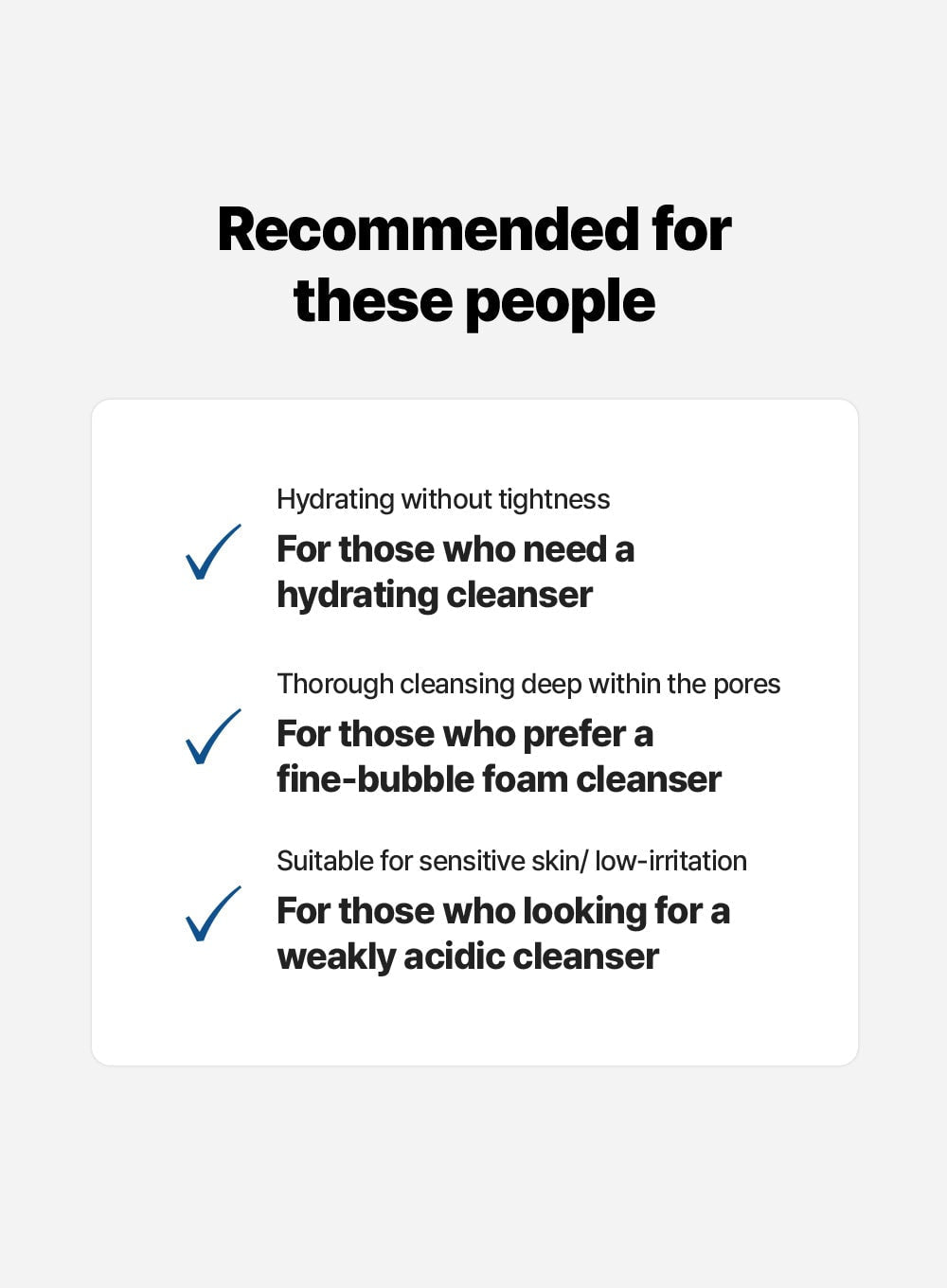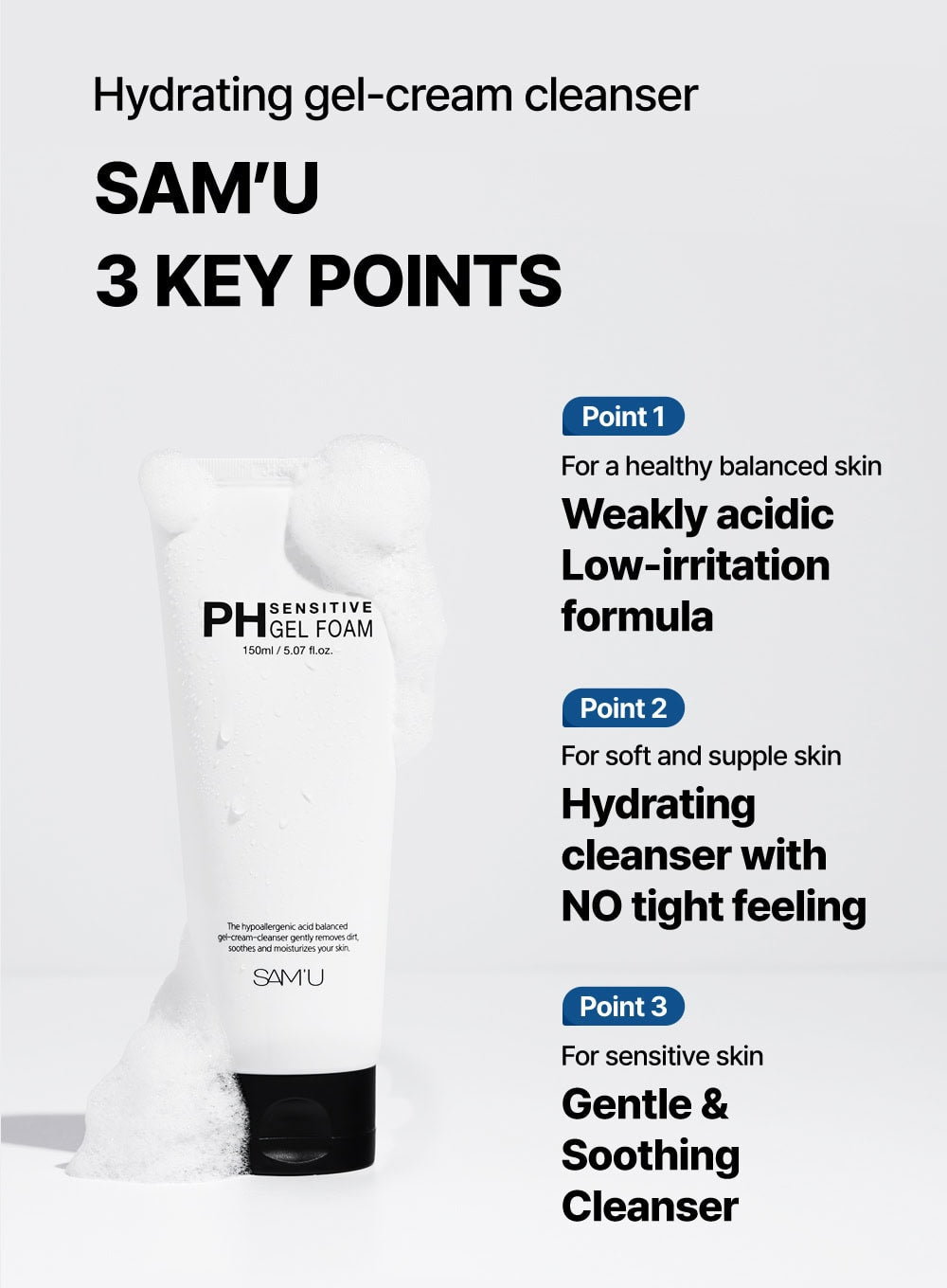 - Low irritation weak acidic foam cleanser that can calm sensitive skin and care pH balance