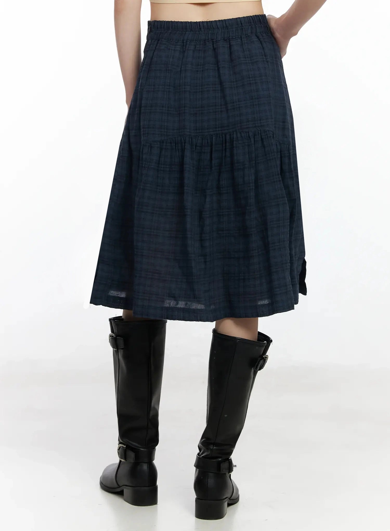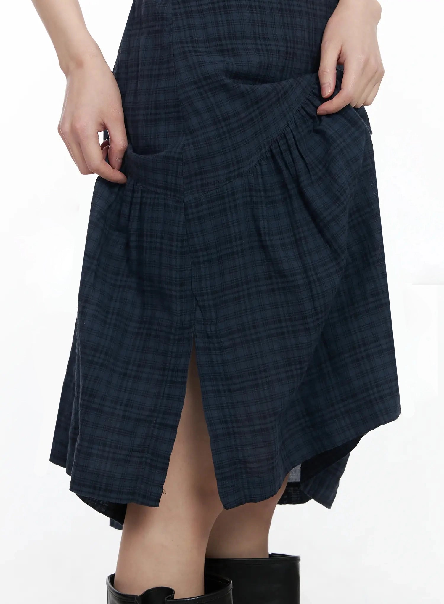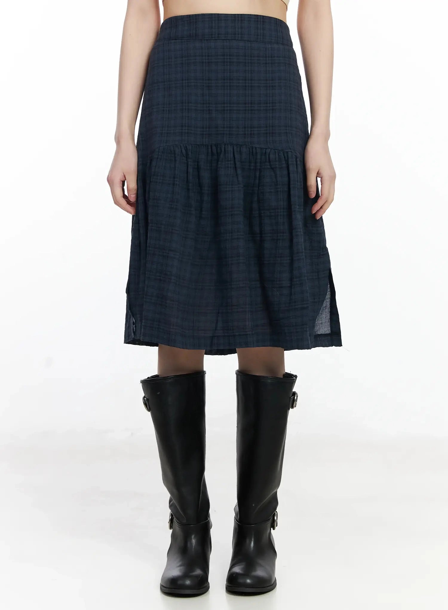 Plaid Split Midi Skirt F516