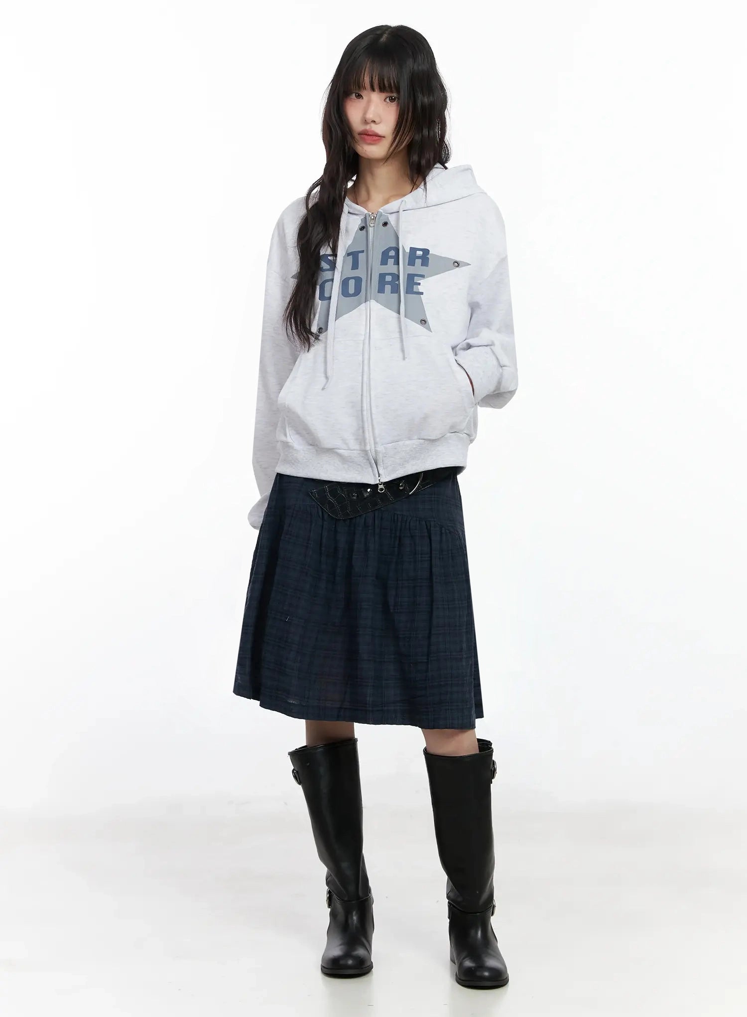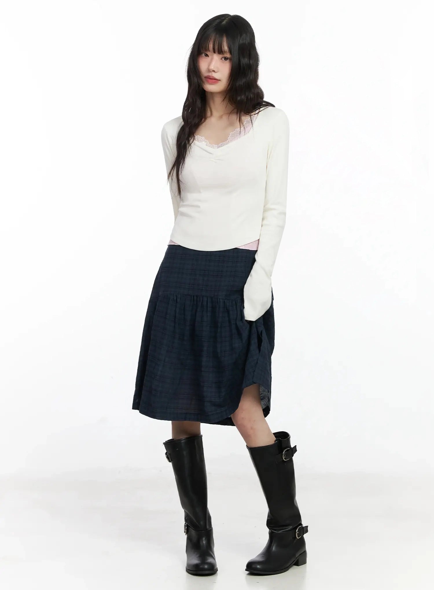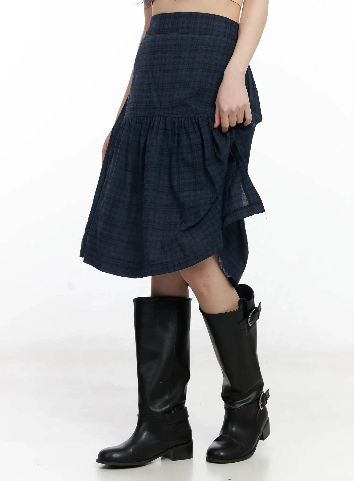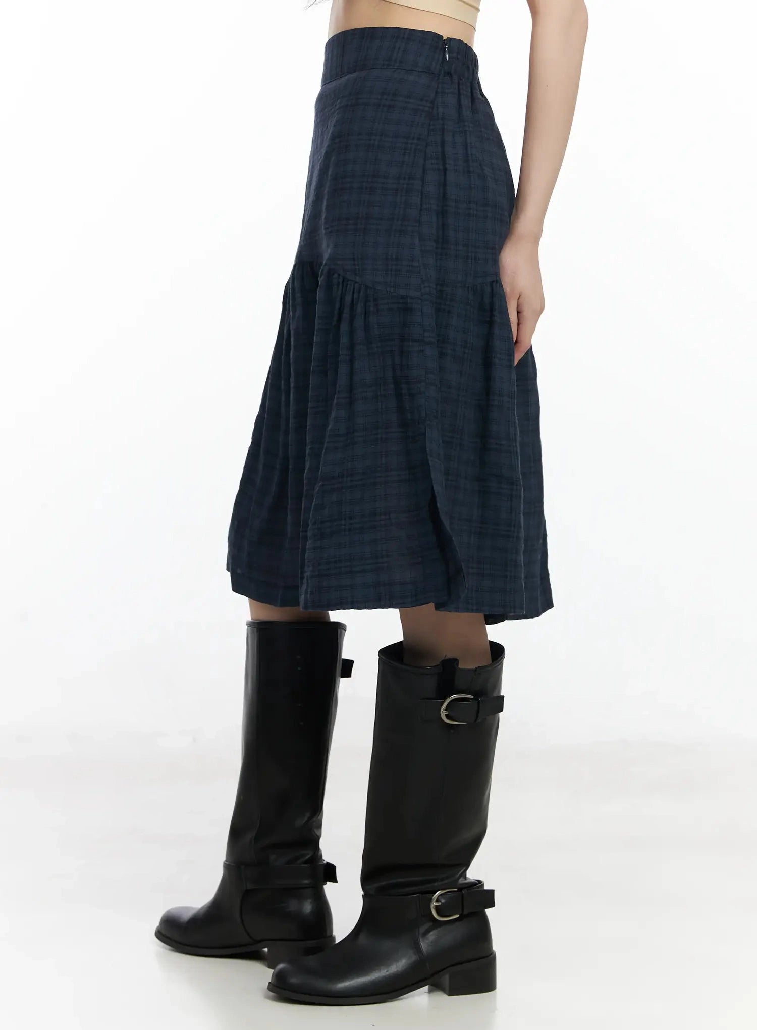 Plaid Split Midi Skirt F516