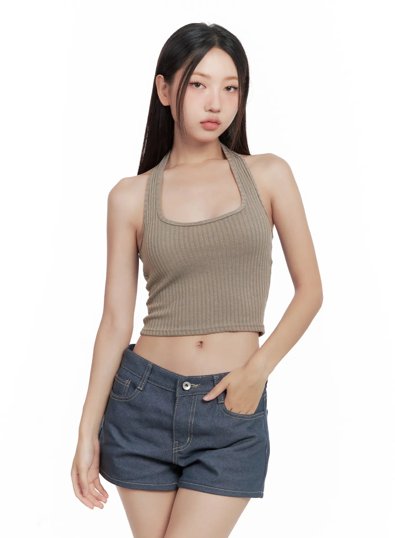 Ribbed Halter Crop Top CL509