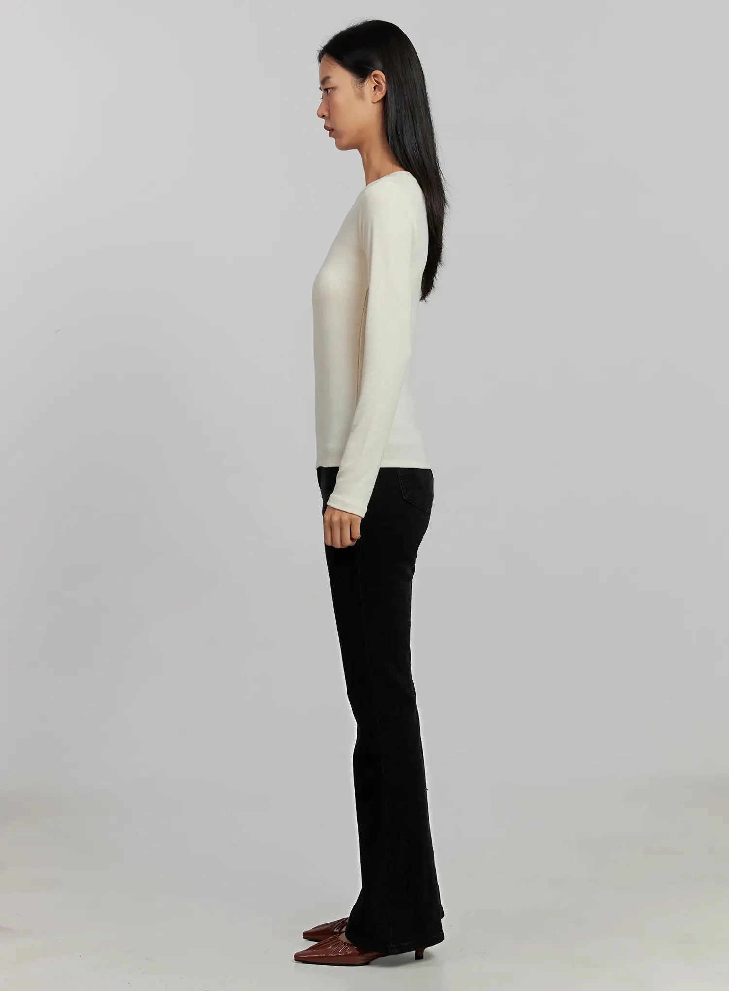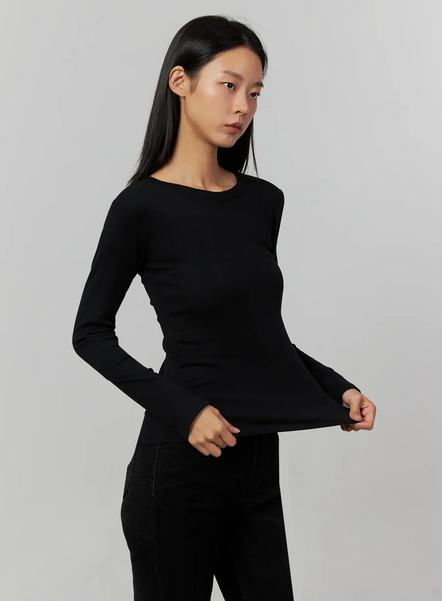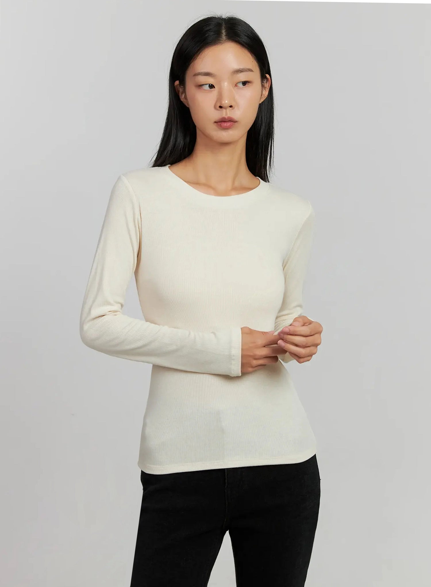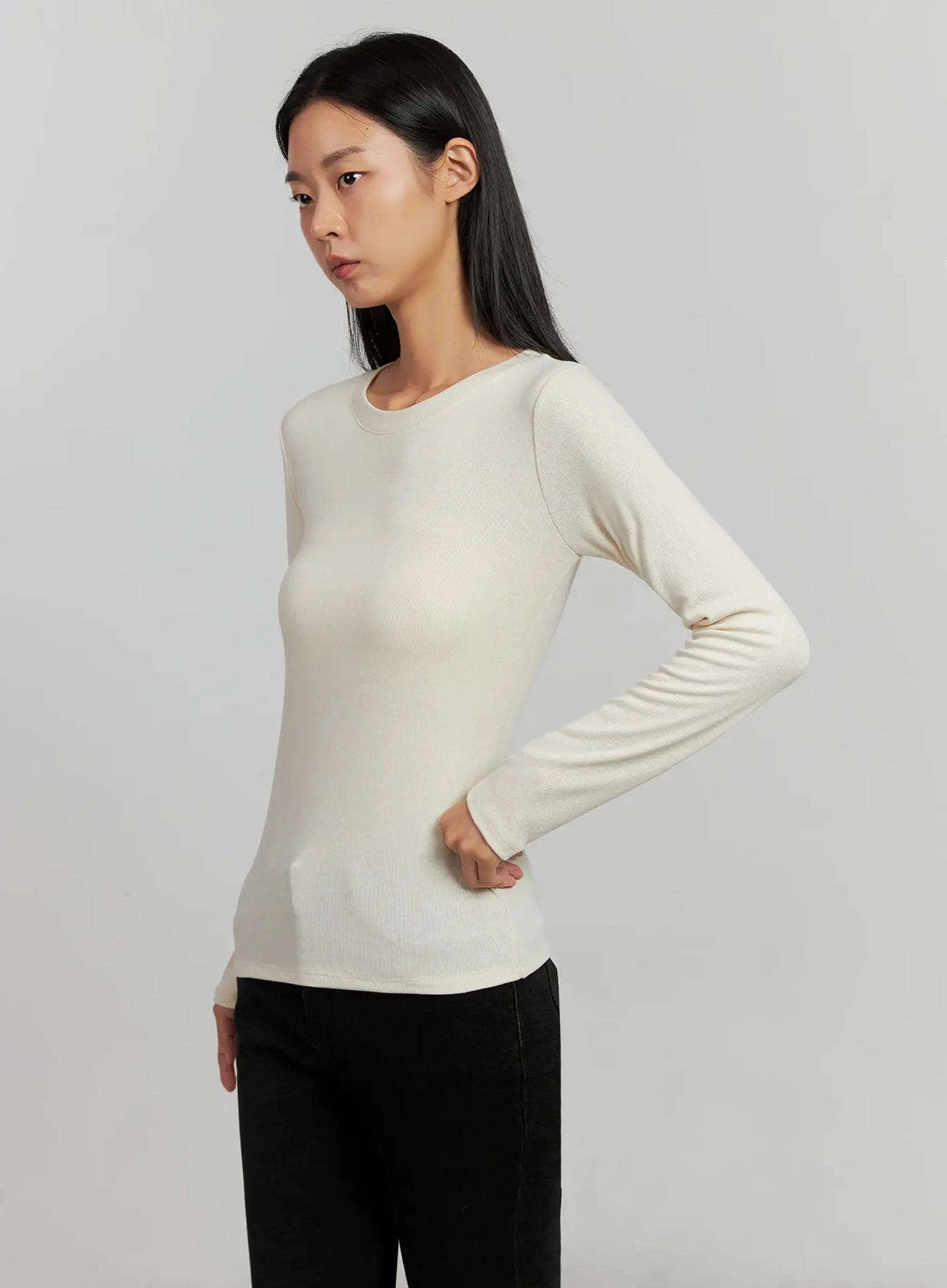 Ribbed Knit Long Sleeve Top IJ505