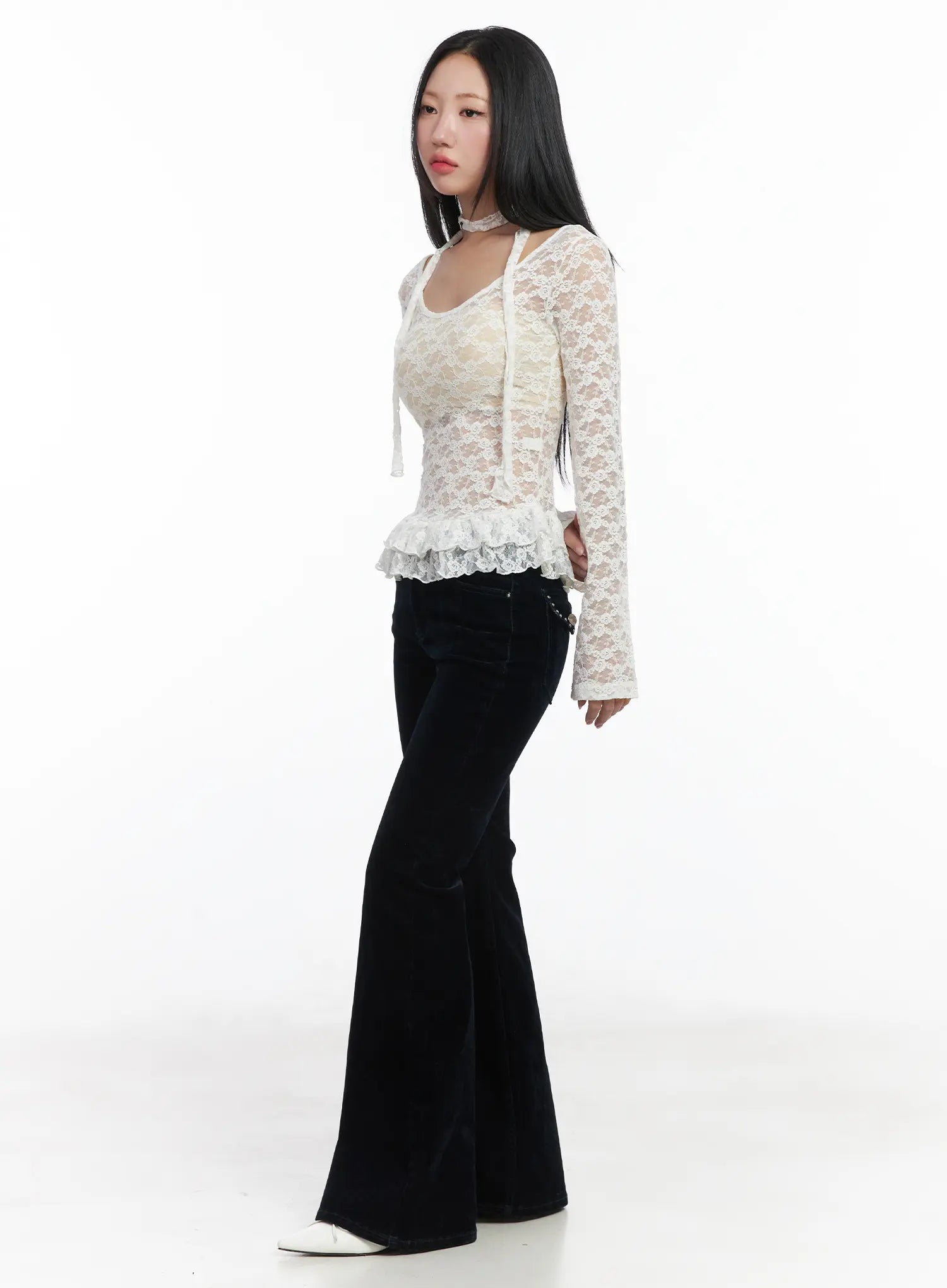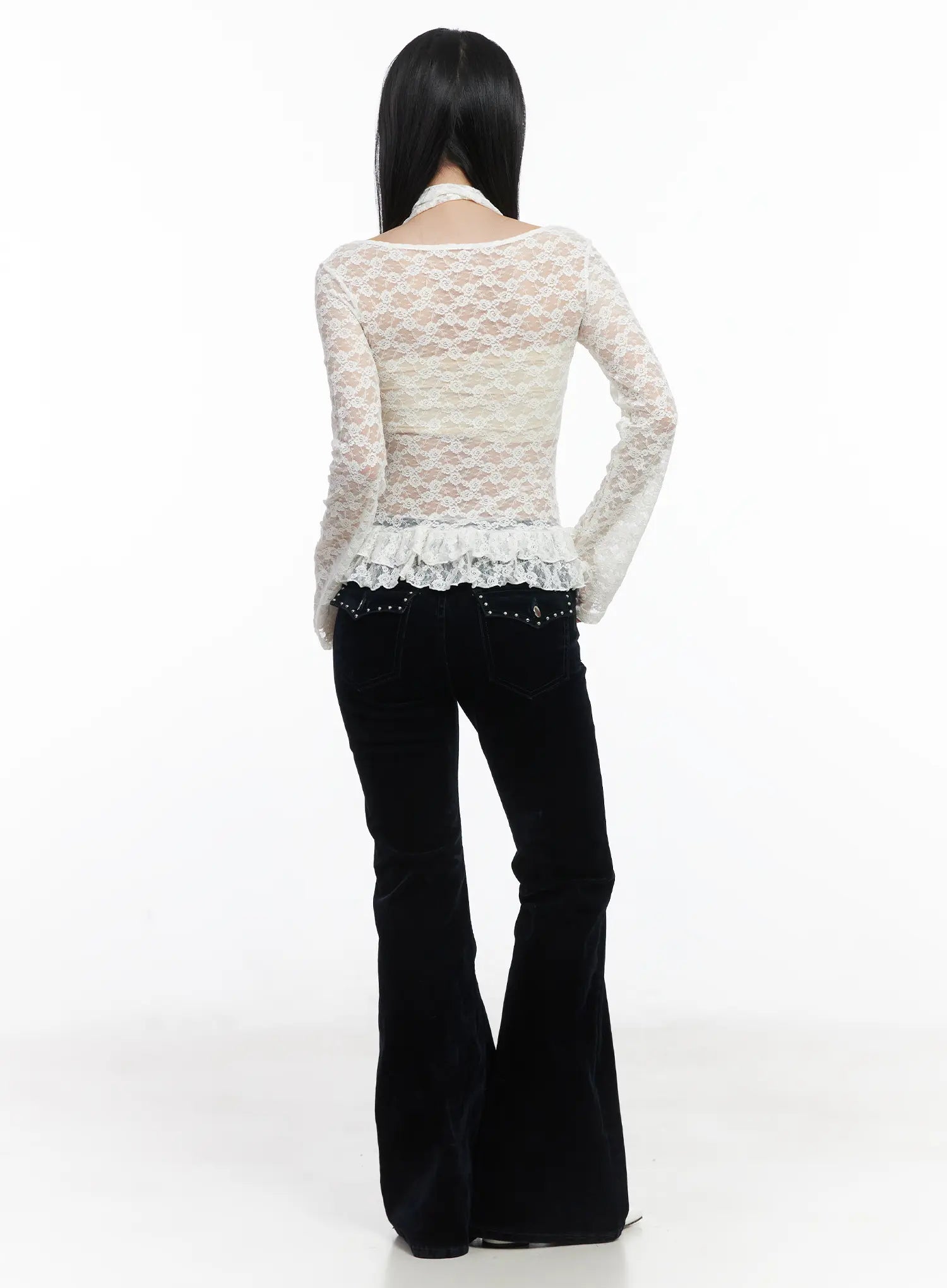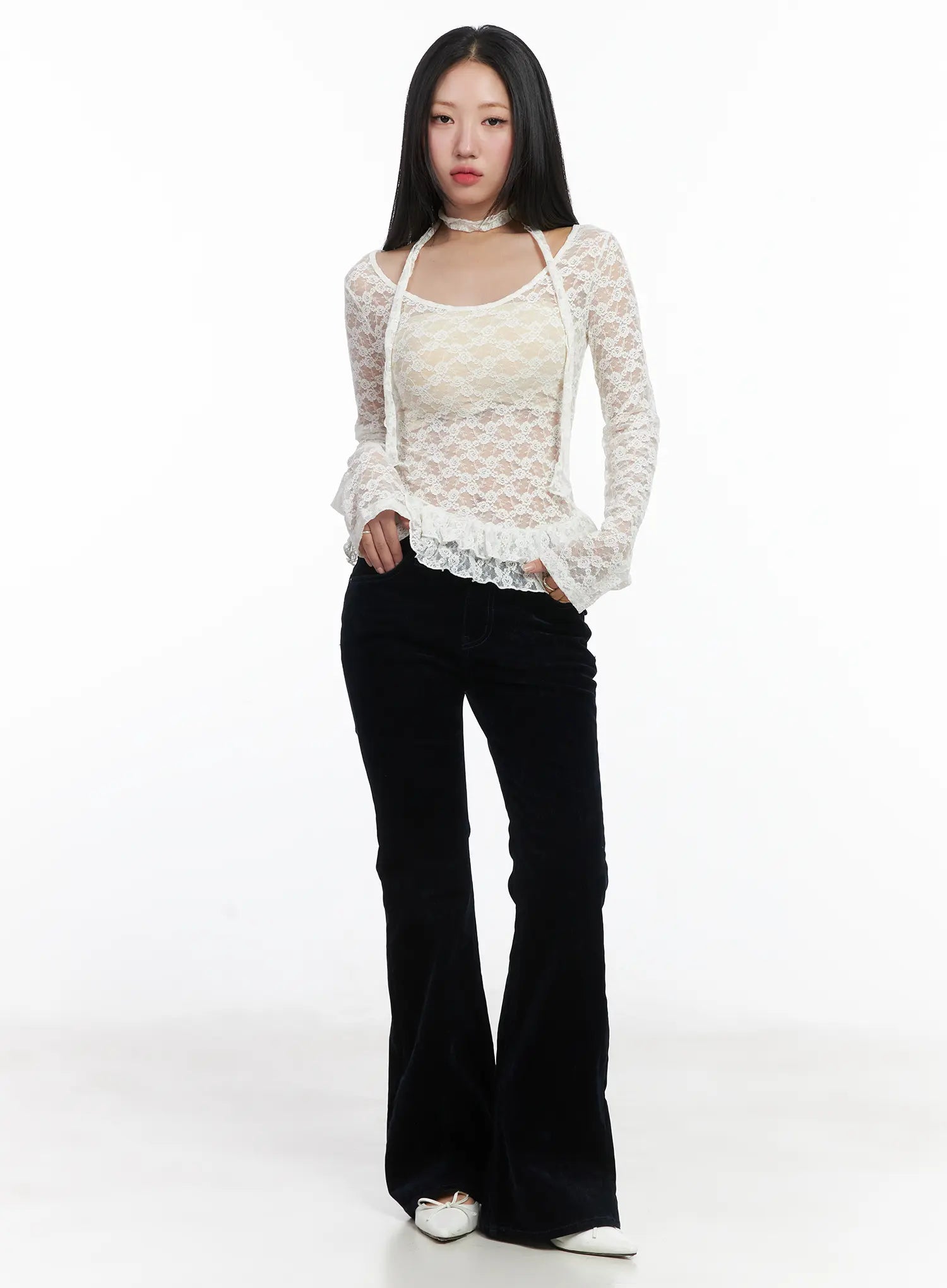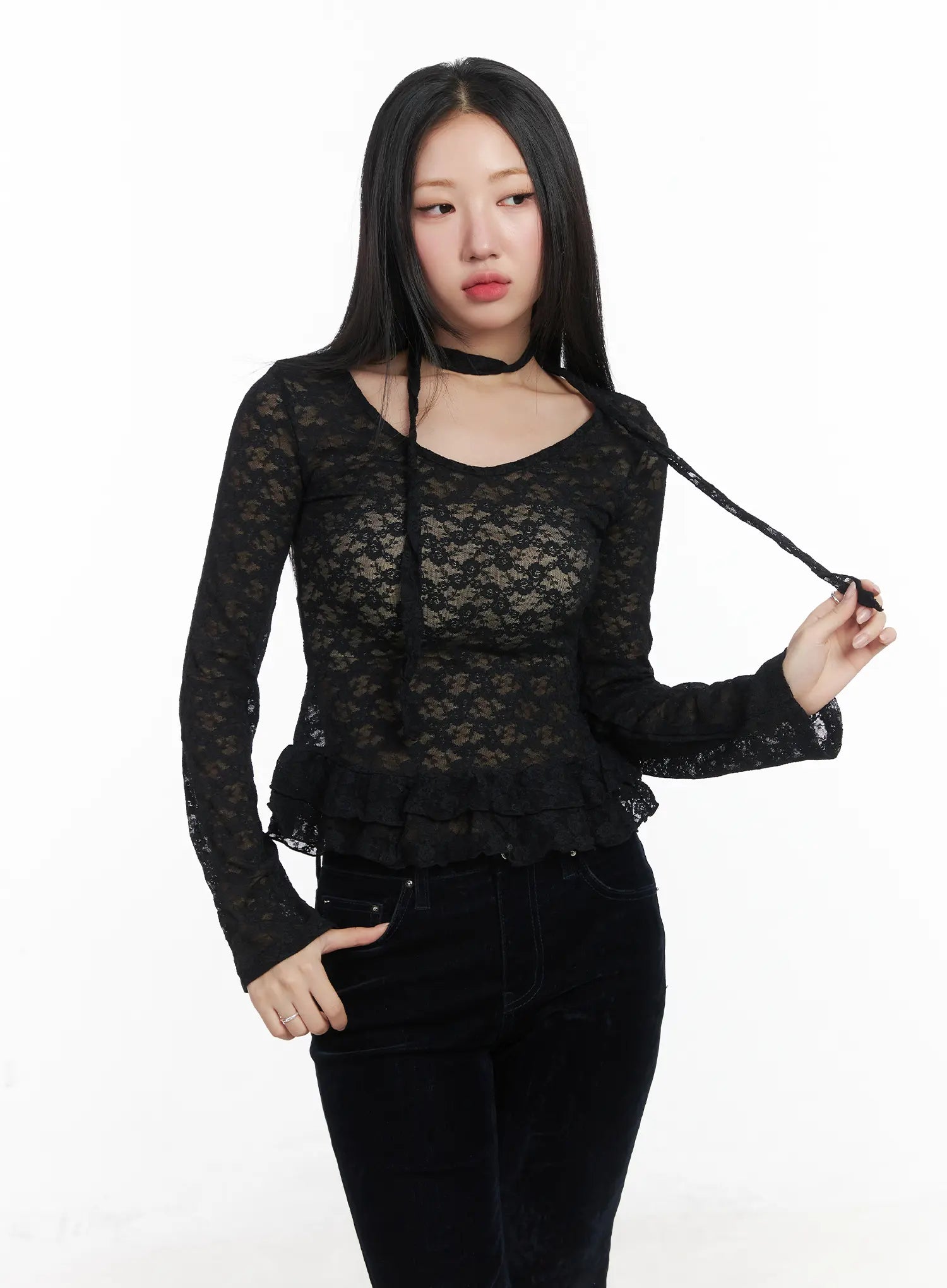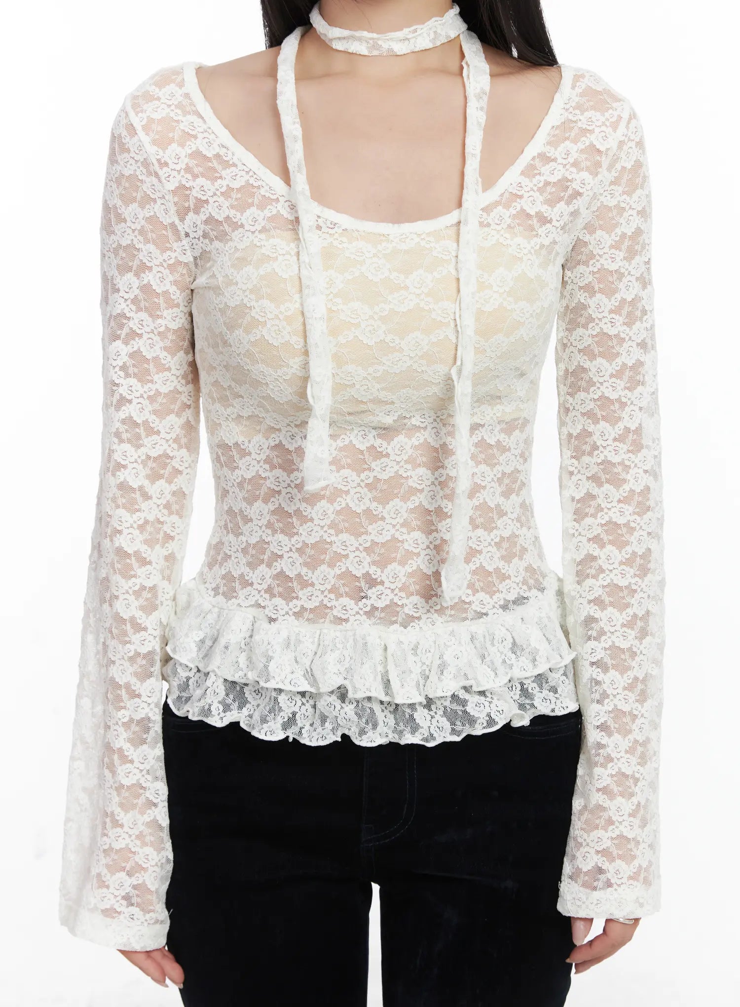 Ruffle Lace Long Sleeve Top Scarf Set CD529