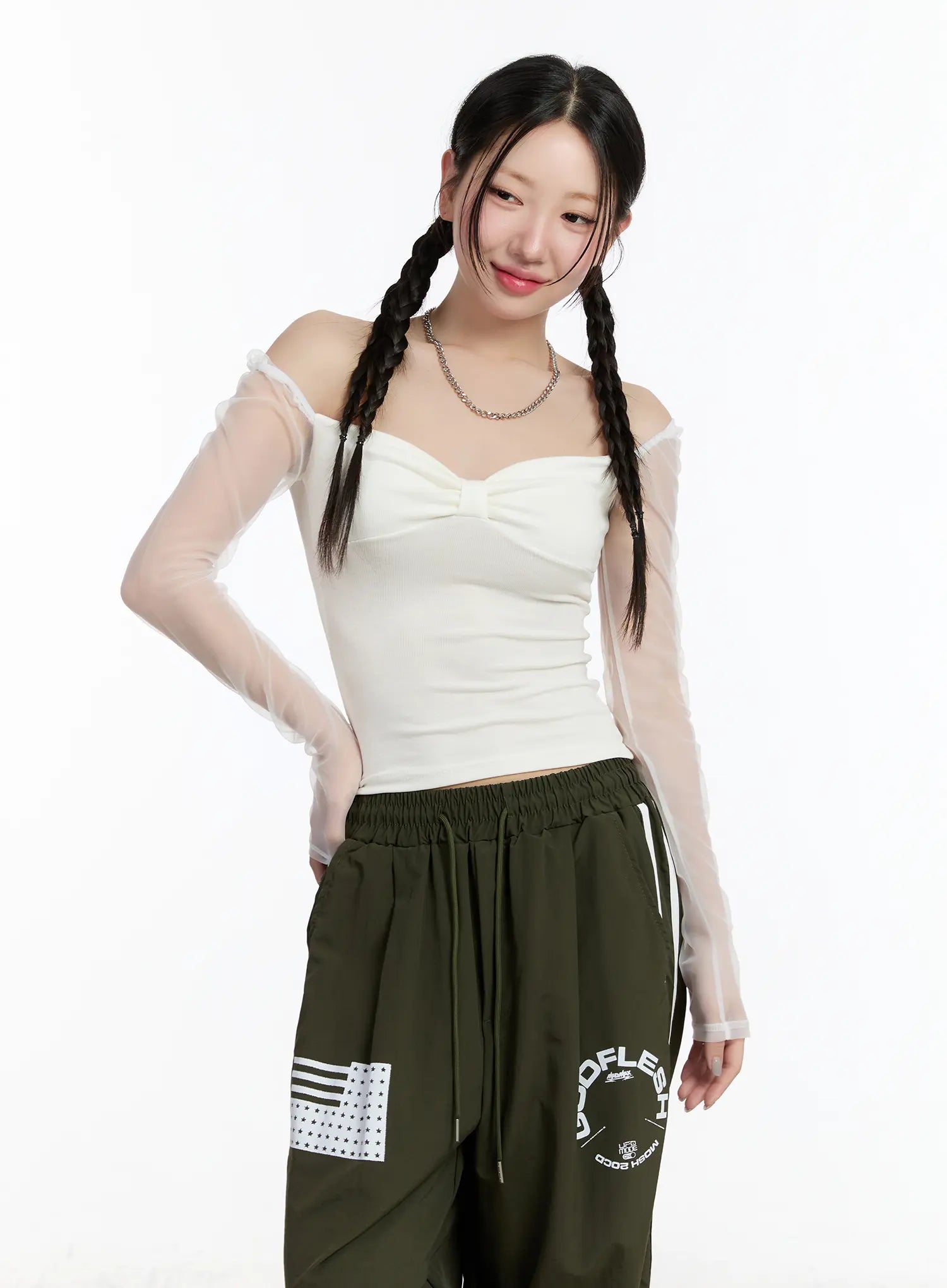 Sheer Frill Off-Shoulder Long Sleeve Top CM511