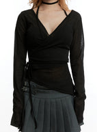 Sheer Wrap V-Neck Long-Sleeve Top CY501