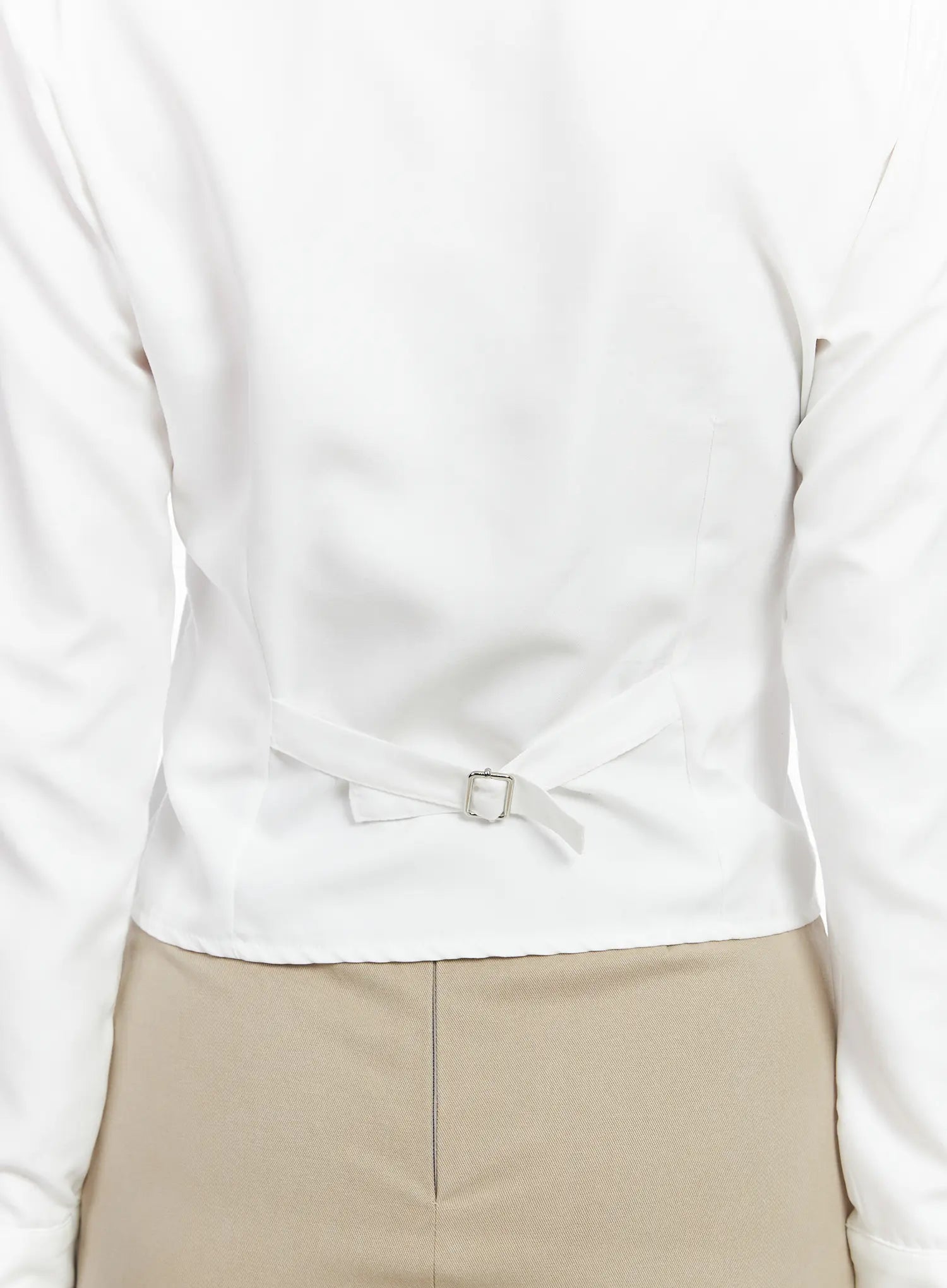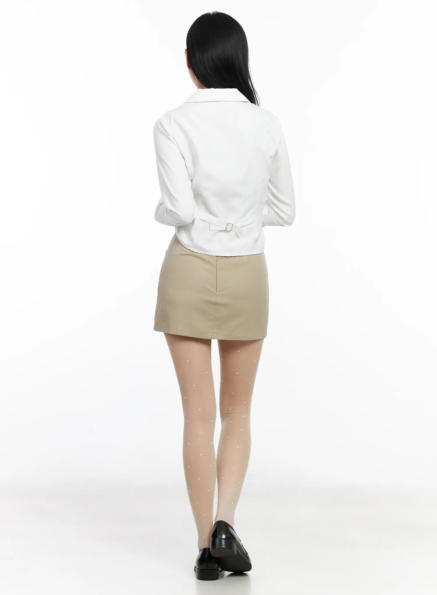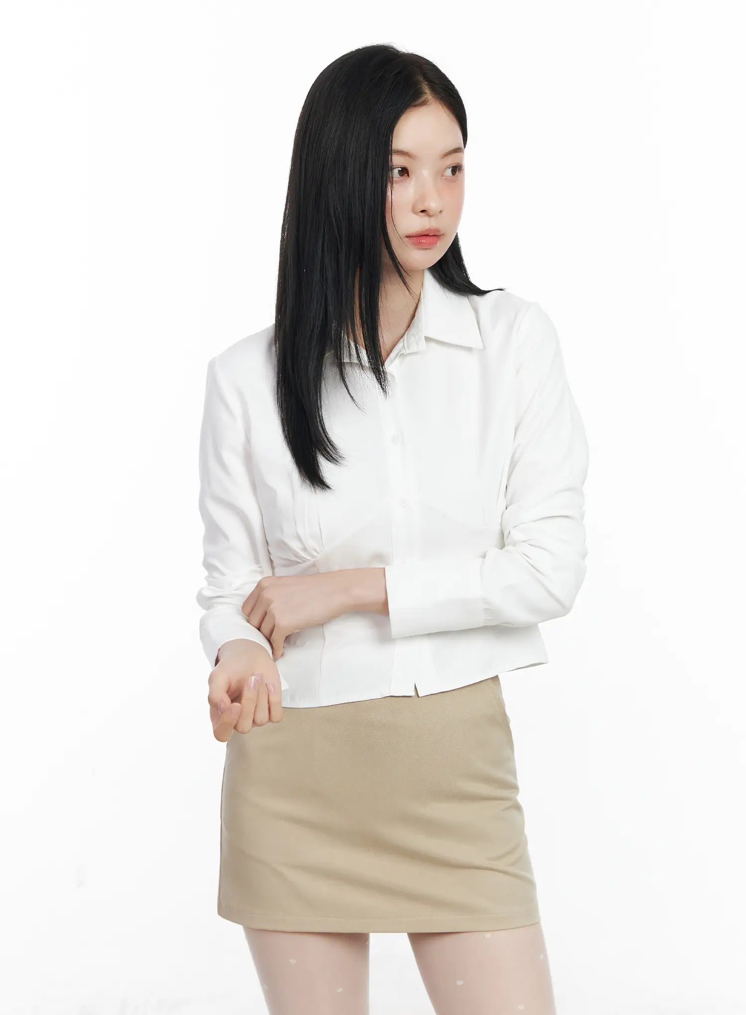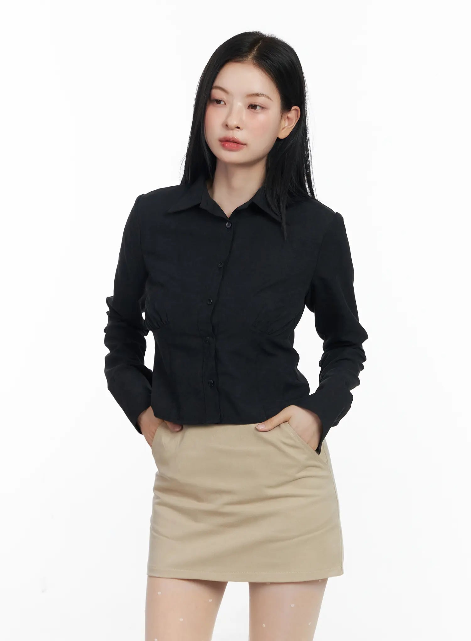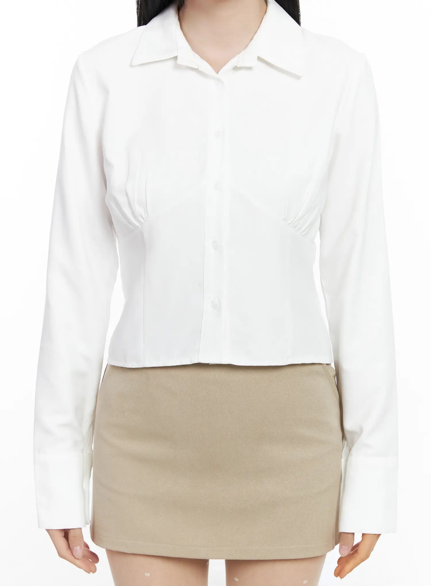 Shirred Back Buckle Crop Long Sleeve Blouse CJ520