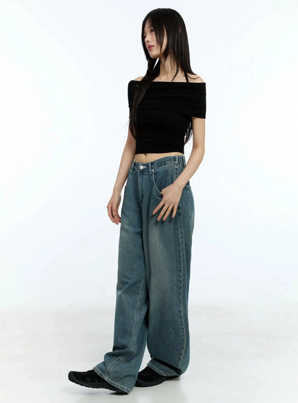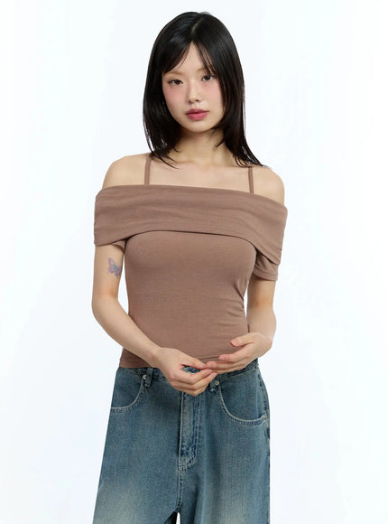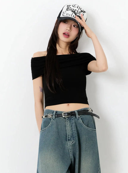 Shirred Off-Shoulder Short-Sleeve Tee IU525