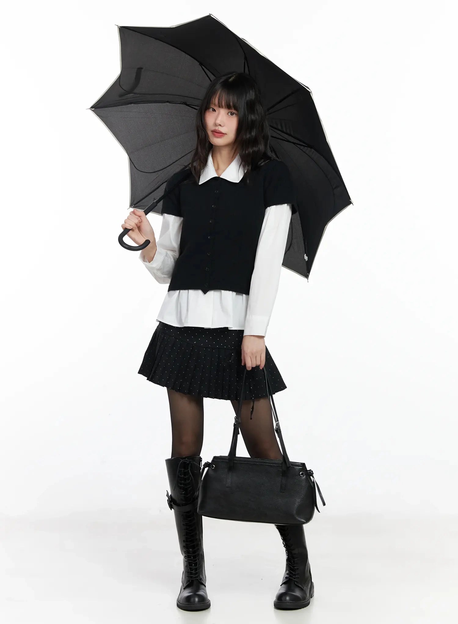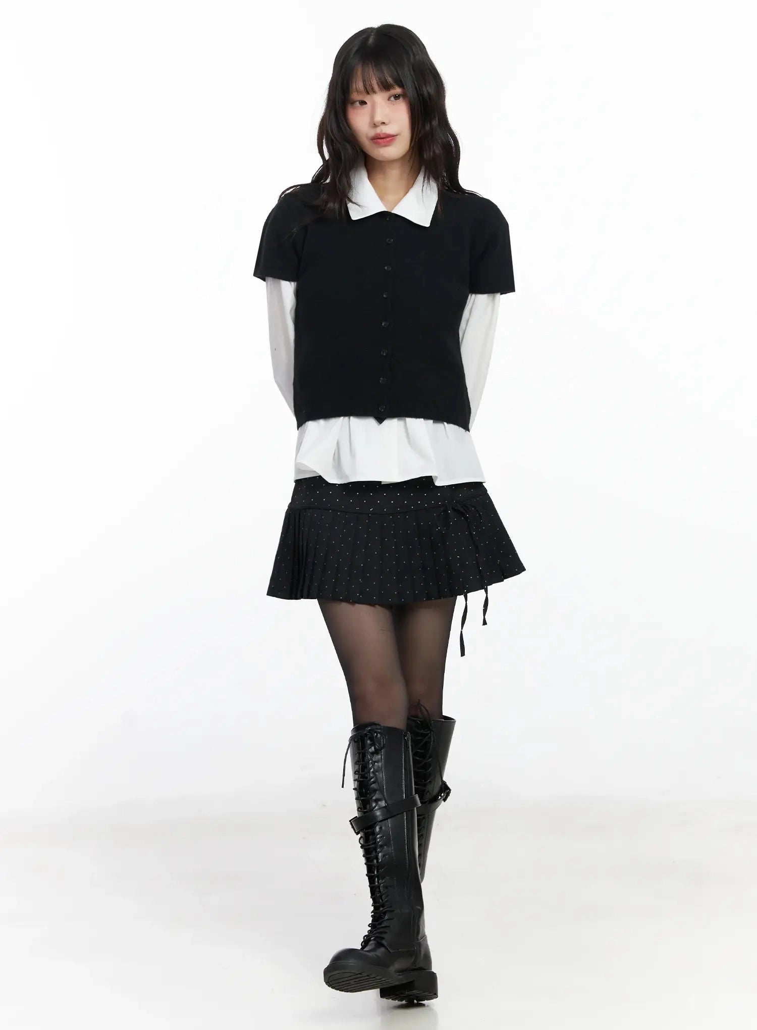 Model is wearing size S/M and the color Black.