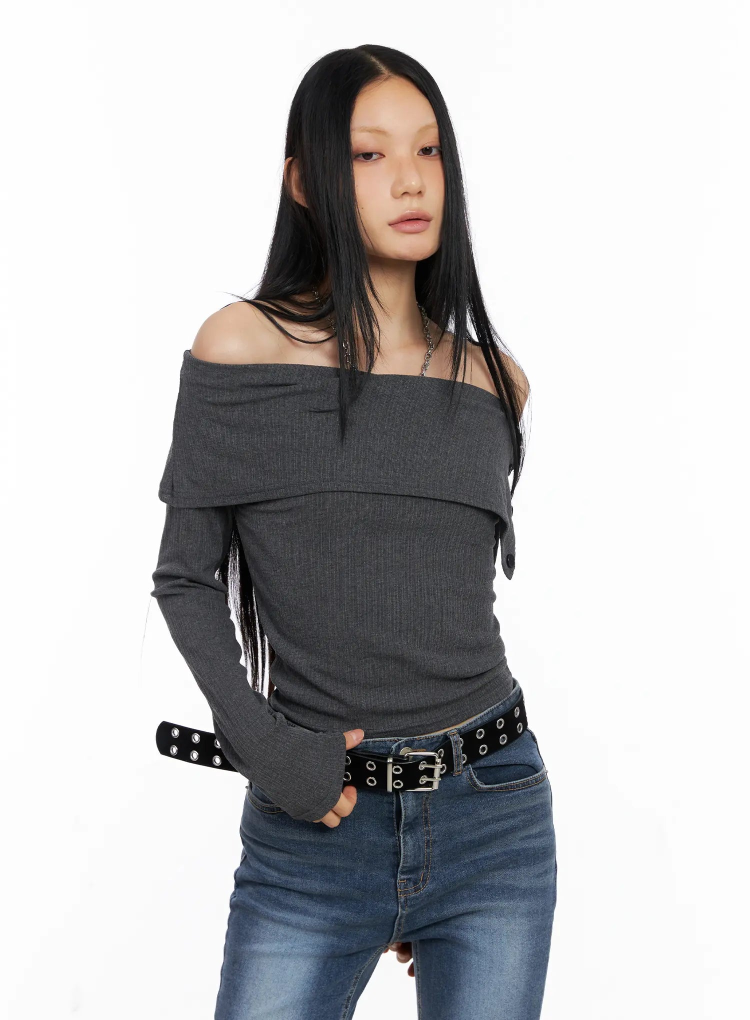 Side-Button Off-Shoulder Long Sleeve CS509