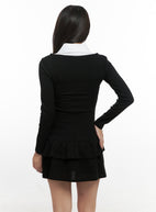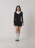 Solid Print Flare Collar Dress CN415