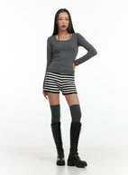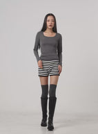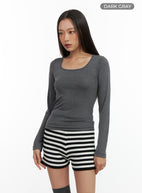 Solid Square-Neck Long-Sleeve Top CO424