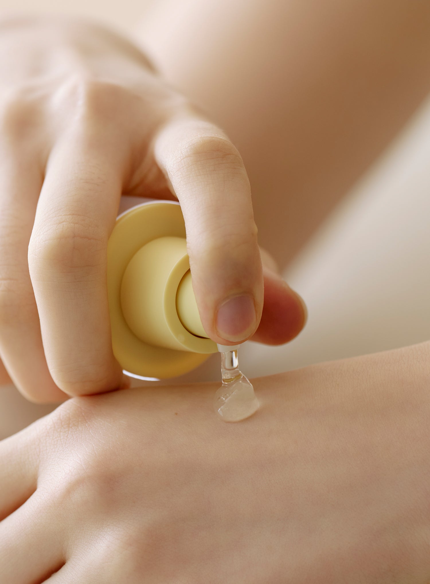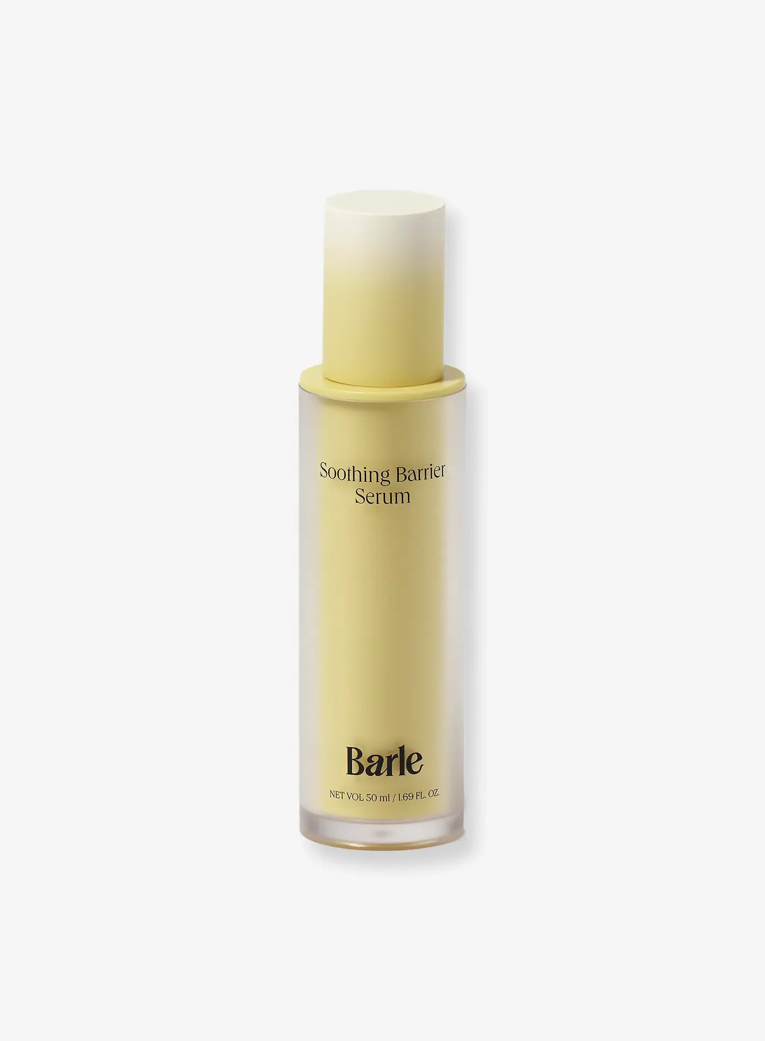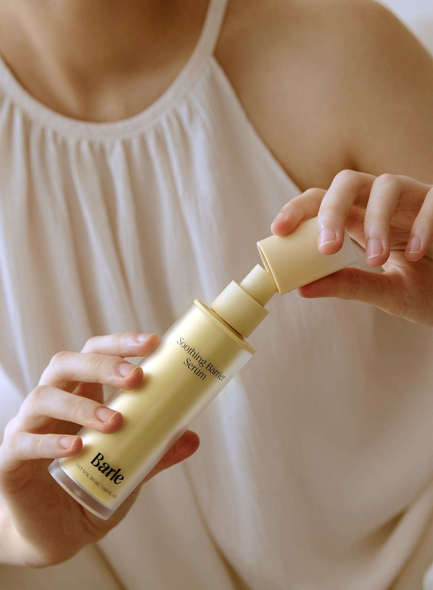 After cleansing, refine skin texture with a toner pad. Apply the Soothing Barrier Serum gently from the center of the face outward, then lightly pat to aid absorption.