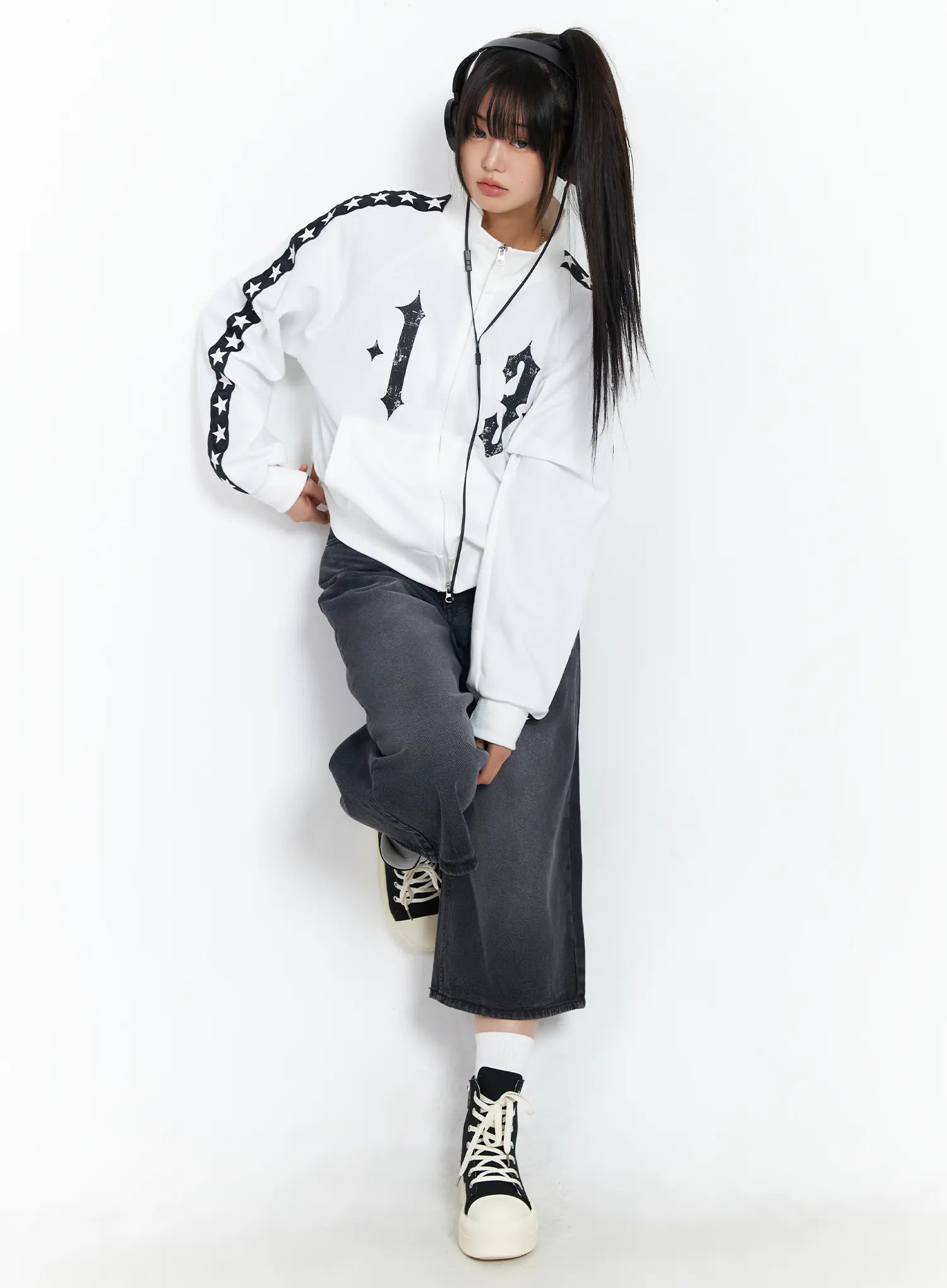 Star Graphic Lined Sporty Zip-Up Jacket CF504
