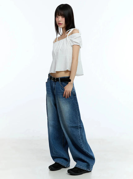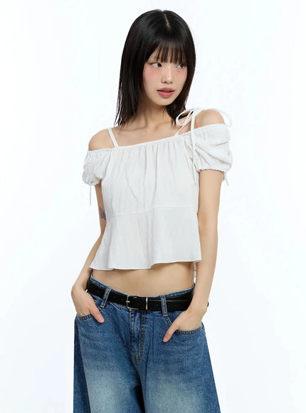 Strappy Off-Shoulder Cropped Blouse IU523