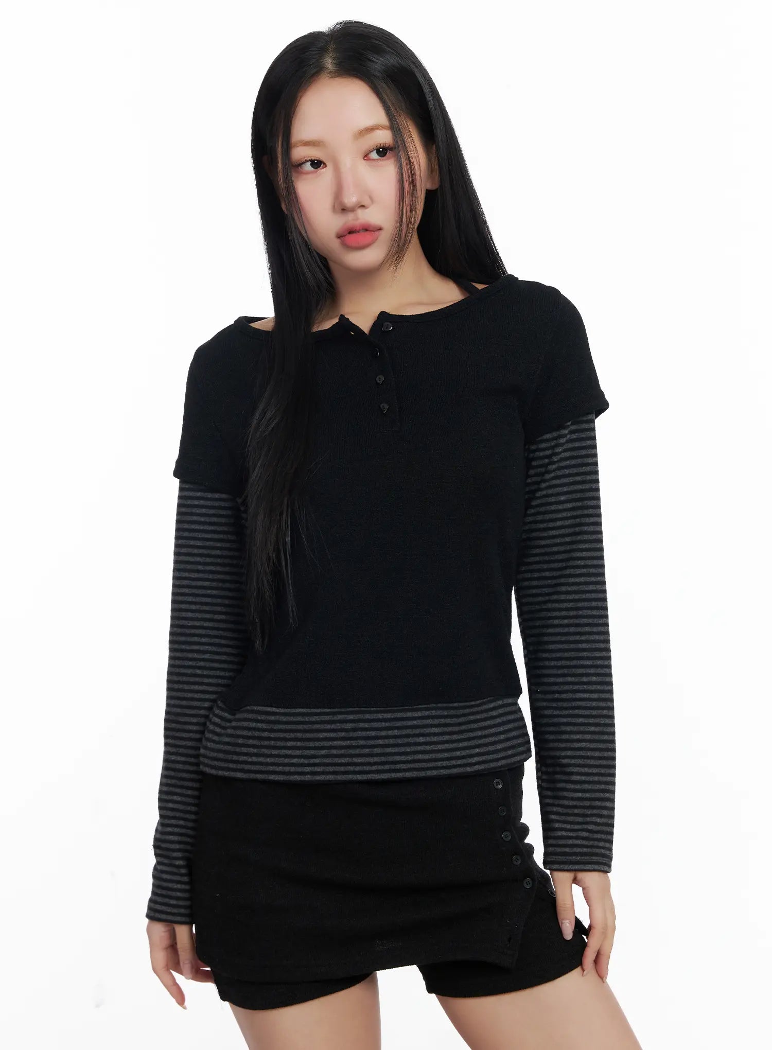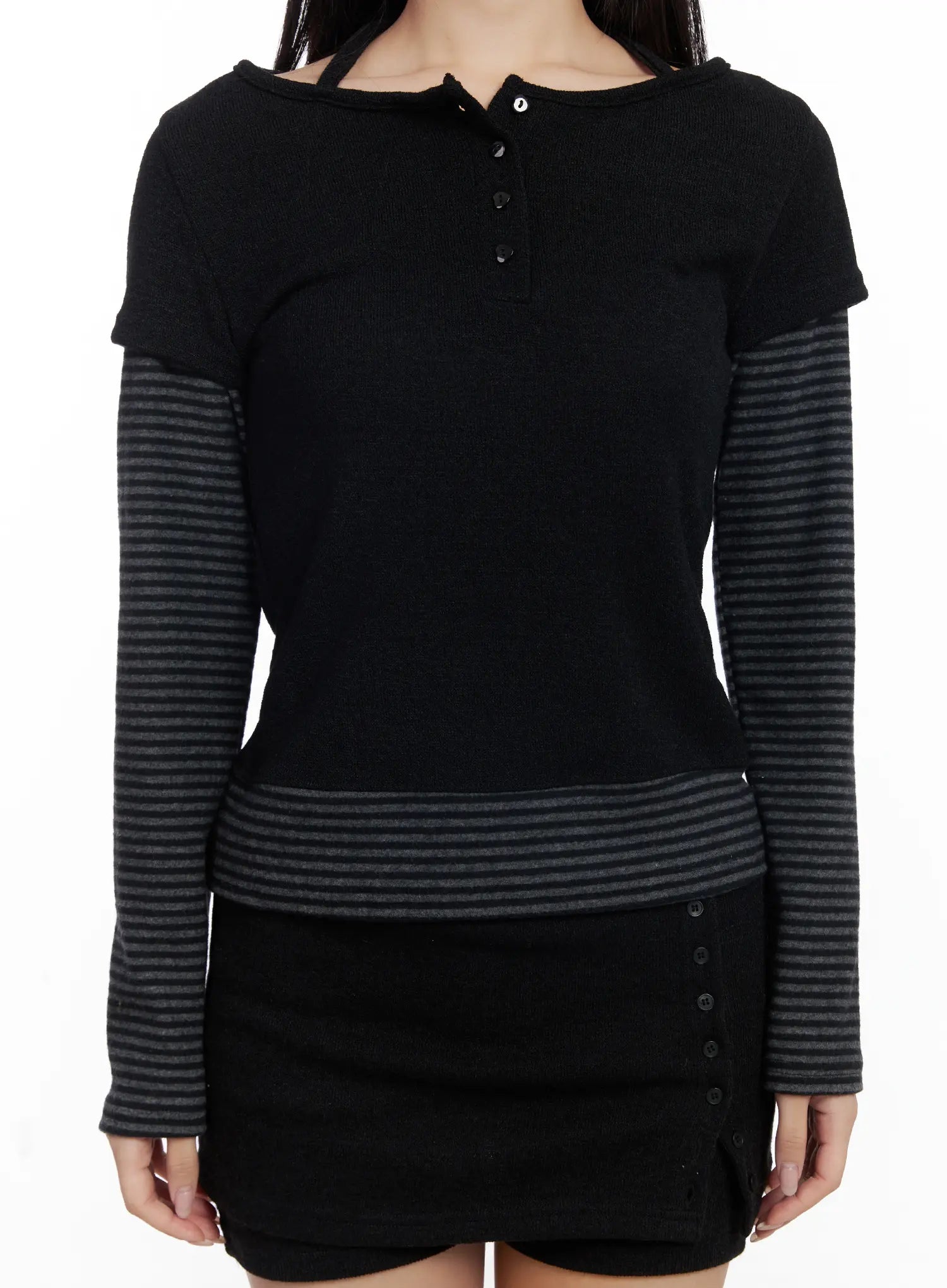 Stripe Contrast Layered Long Sleeve Top CJ514