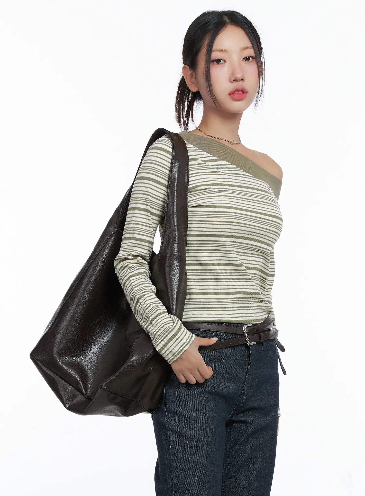 Stripe Off-Shoulder Long Sleeve Top CS502