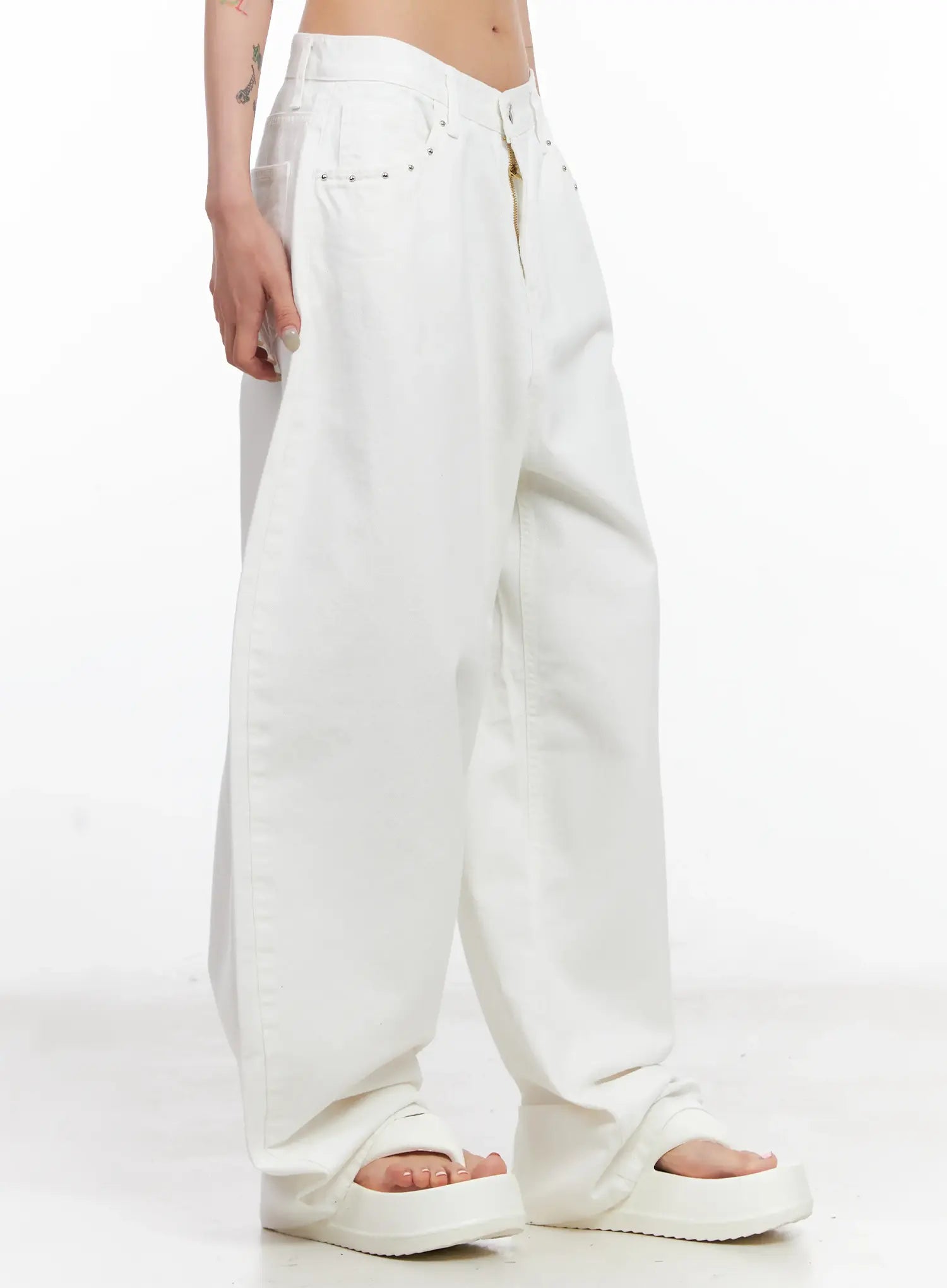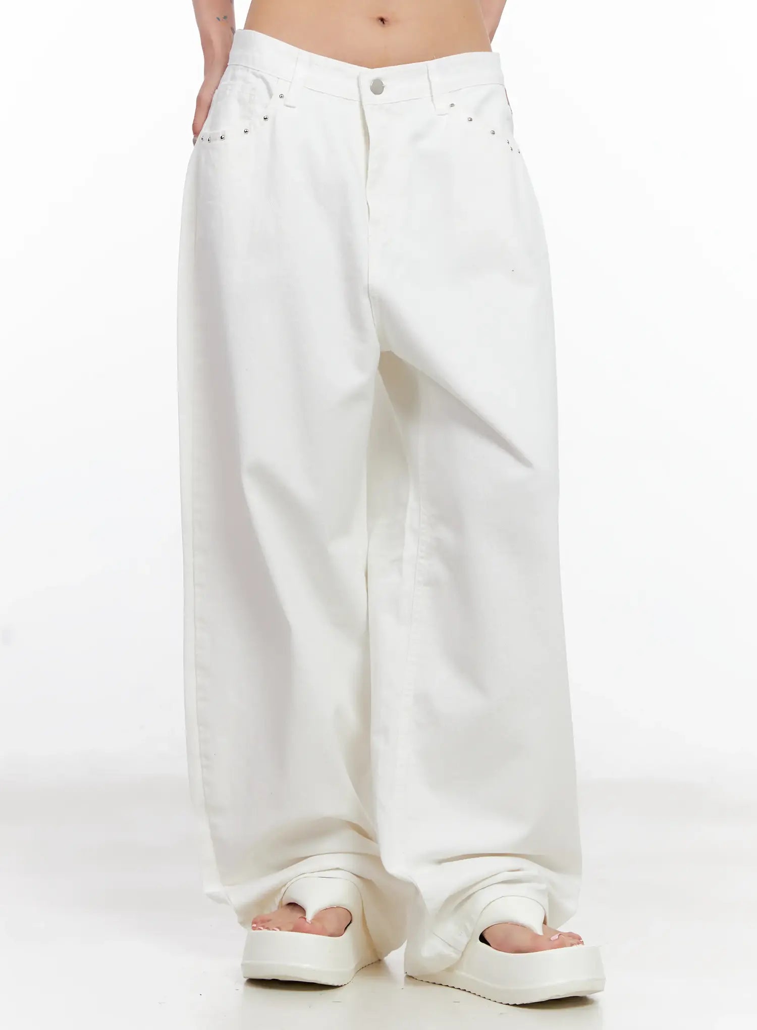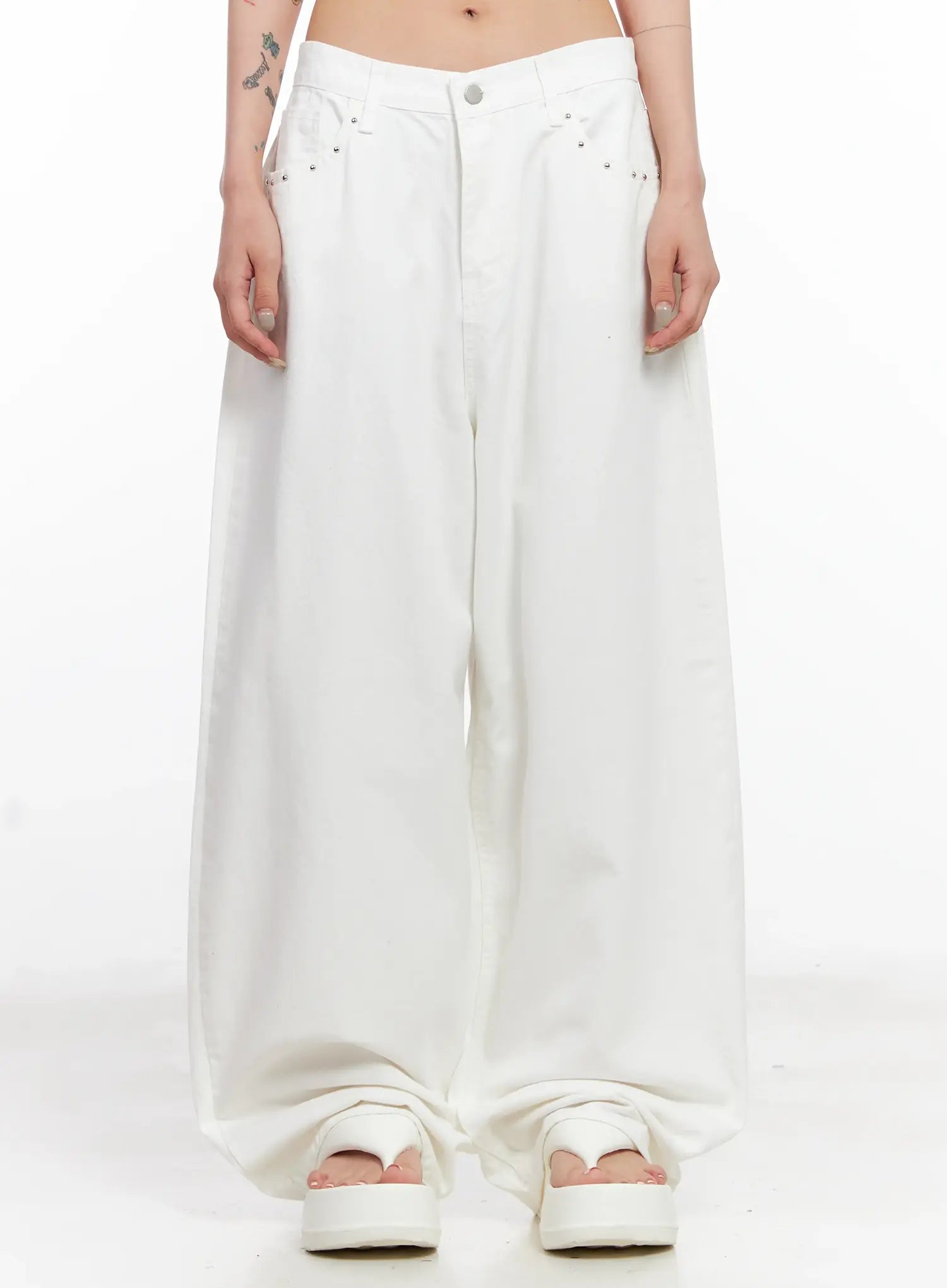 Studded Wide-Leg Cotton Pants CL525