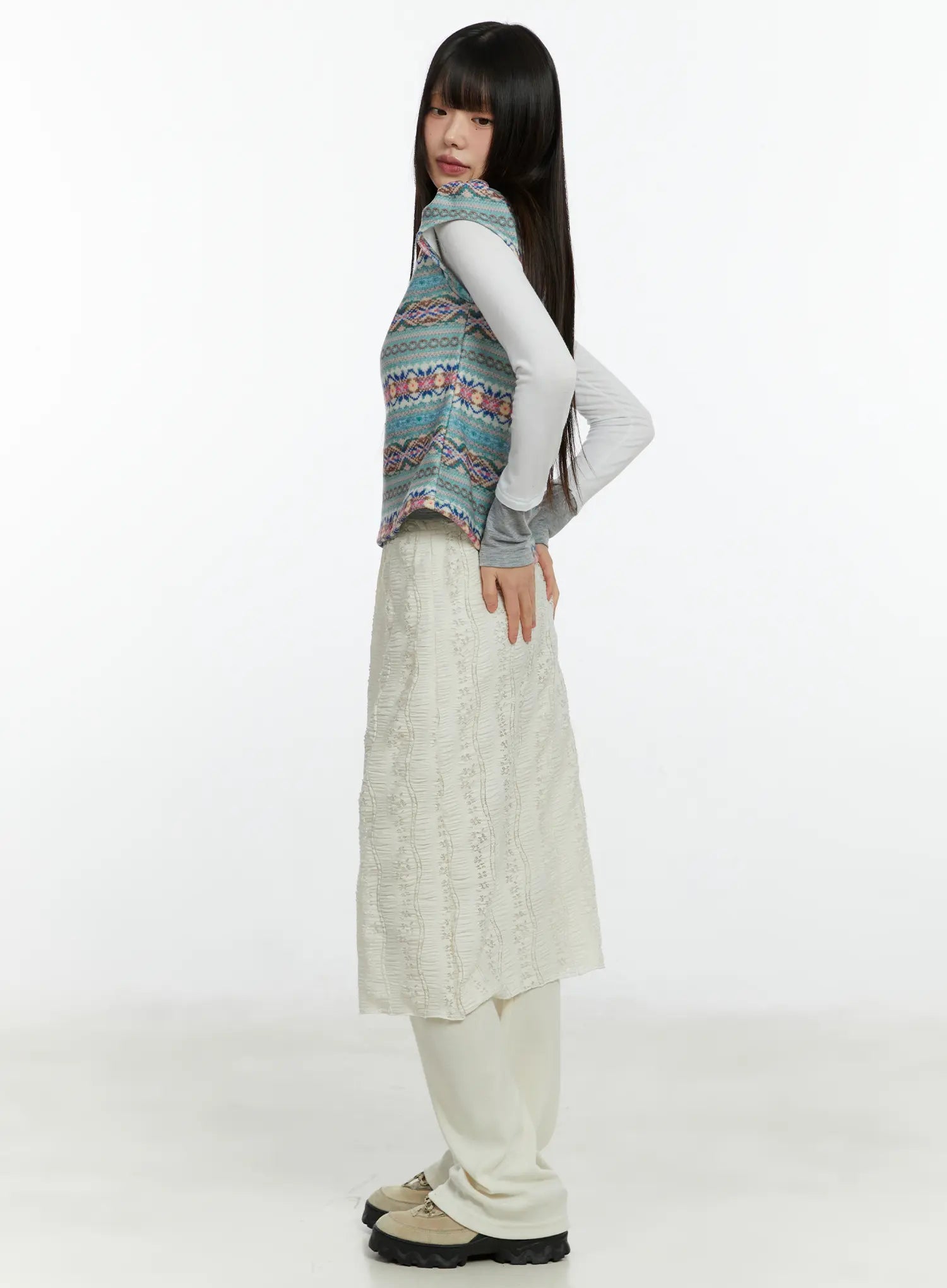 Textured Maxi Skirt Pants CF509