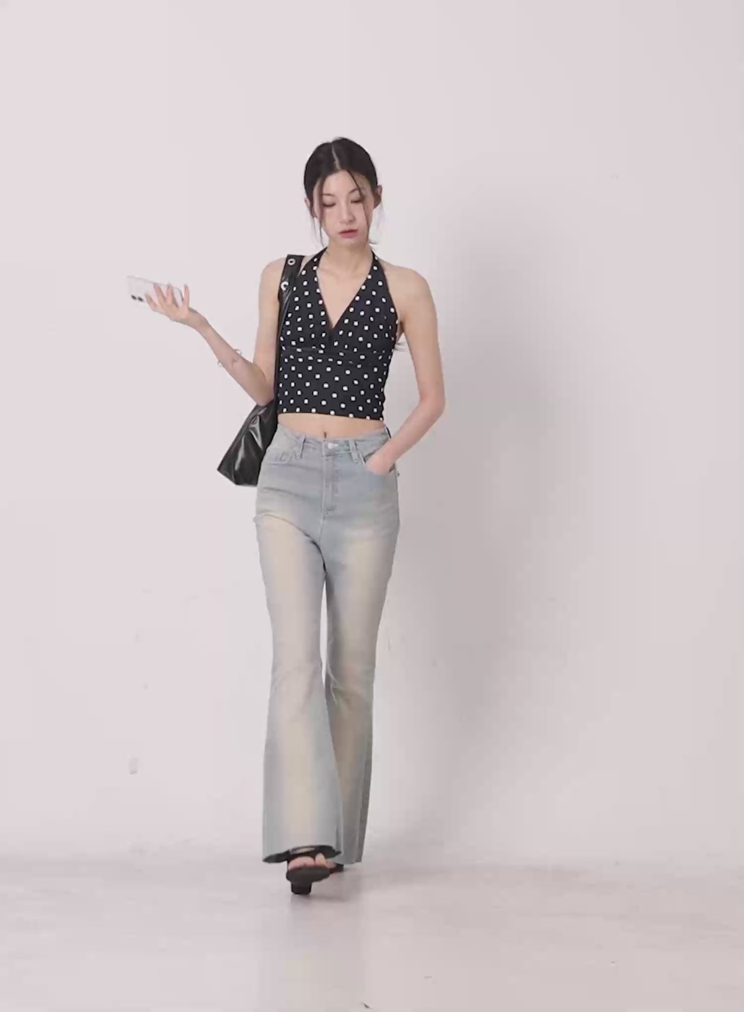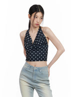 V-Neck Polka Dot Halter Top CL501
