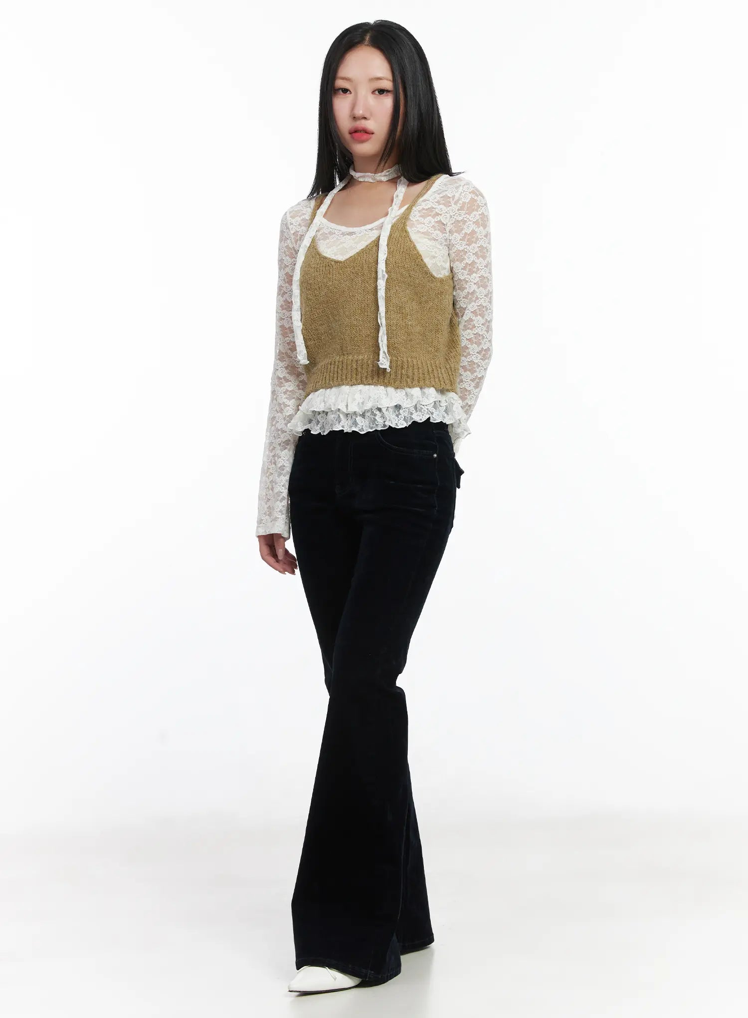 Velvet Studded Bootcut Pants CD529