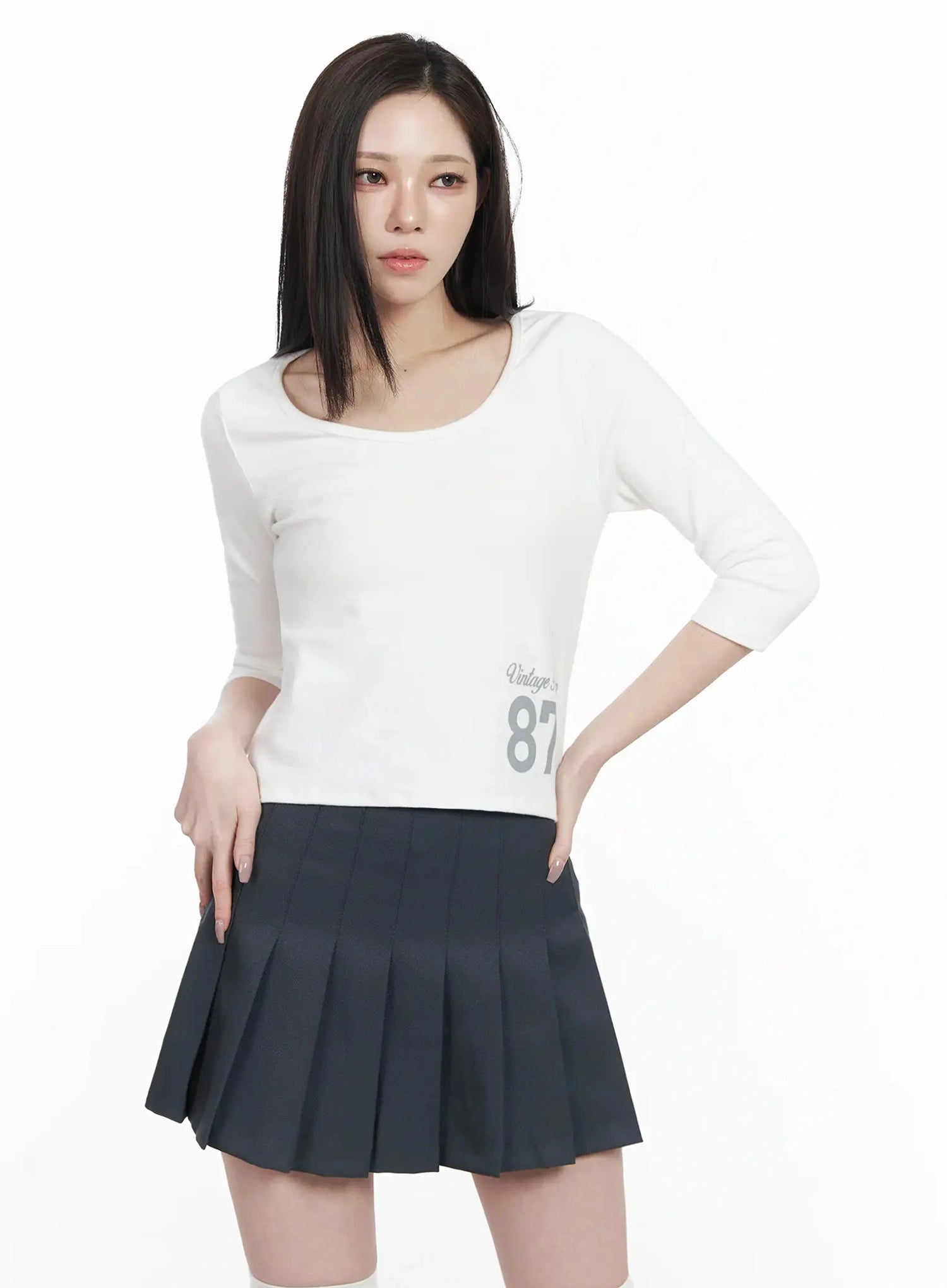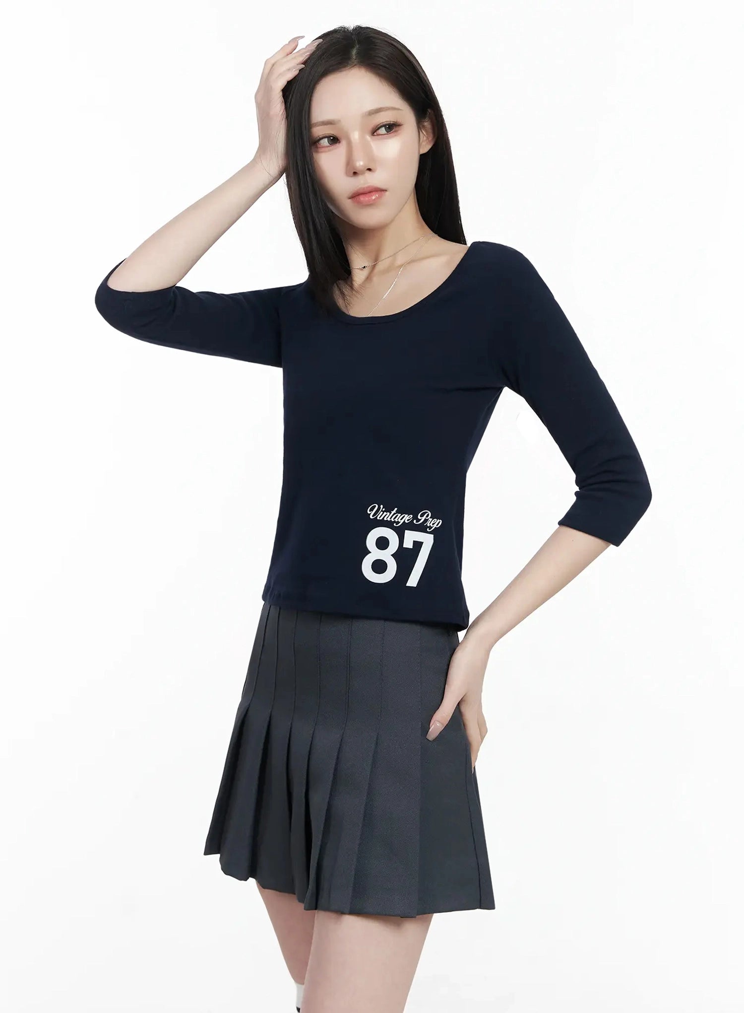 Vintage Numeral Half Sleeve Fleece Top IJ528