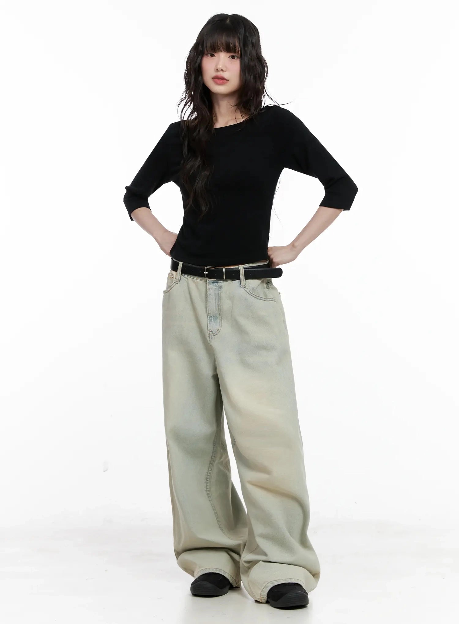 Xiaoting Vintage Style Wide-Leg Denim IL531