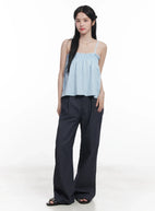 Yoona Wide-Leg Pintuck Jeans CU523