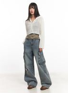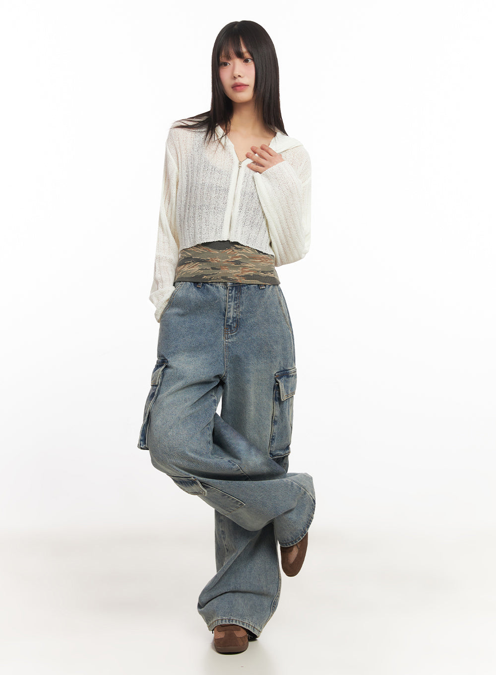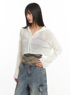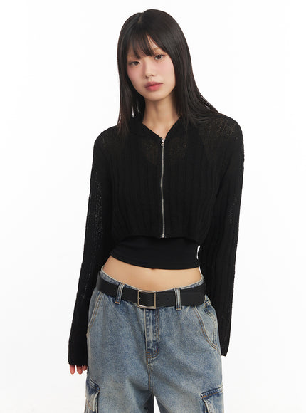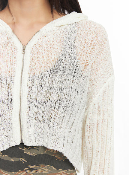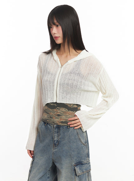 Zip-Up Sheer Hooded Cardigan IA528