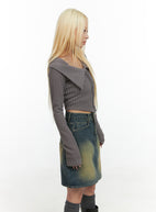 Zipper Chic Collared Crop Top CO415