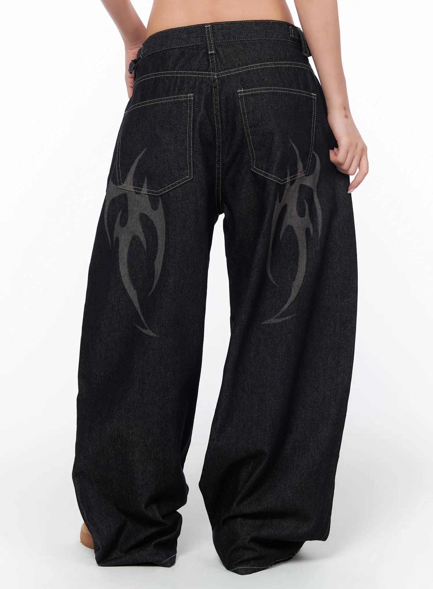 Aitana Eco Print Wide Leg Raw Denim Jeans CA515