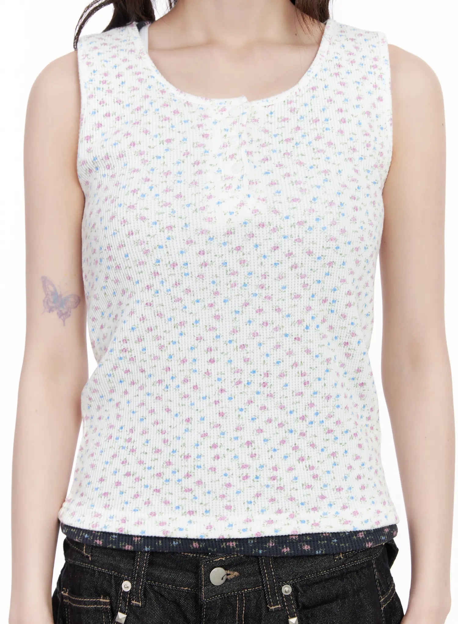 Ribbed Floral Tank Top CM526