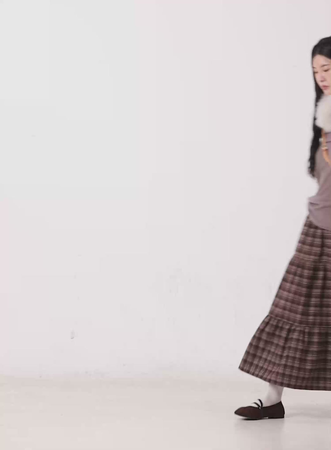 folded-plaid-mini-skirt-cn528 / Brown
