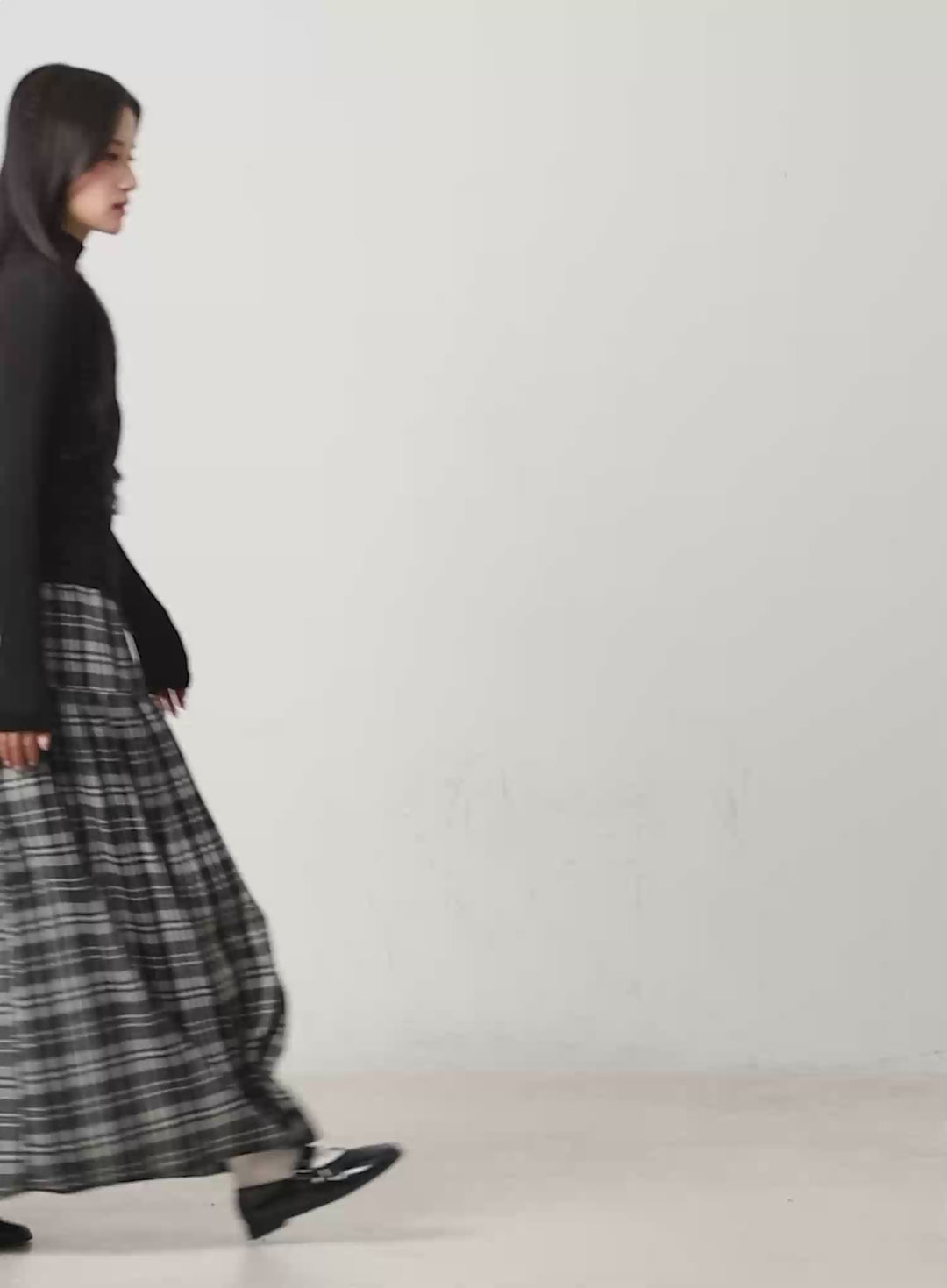 plaid-tiered-maxi-skirt-co515 / Dark blue
