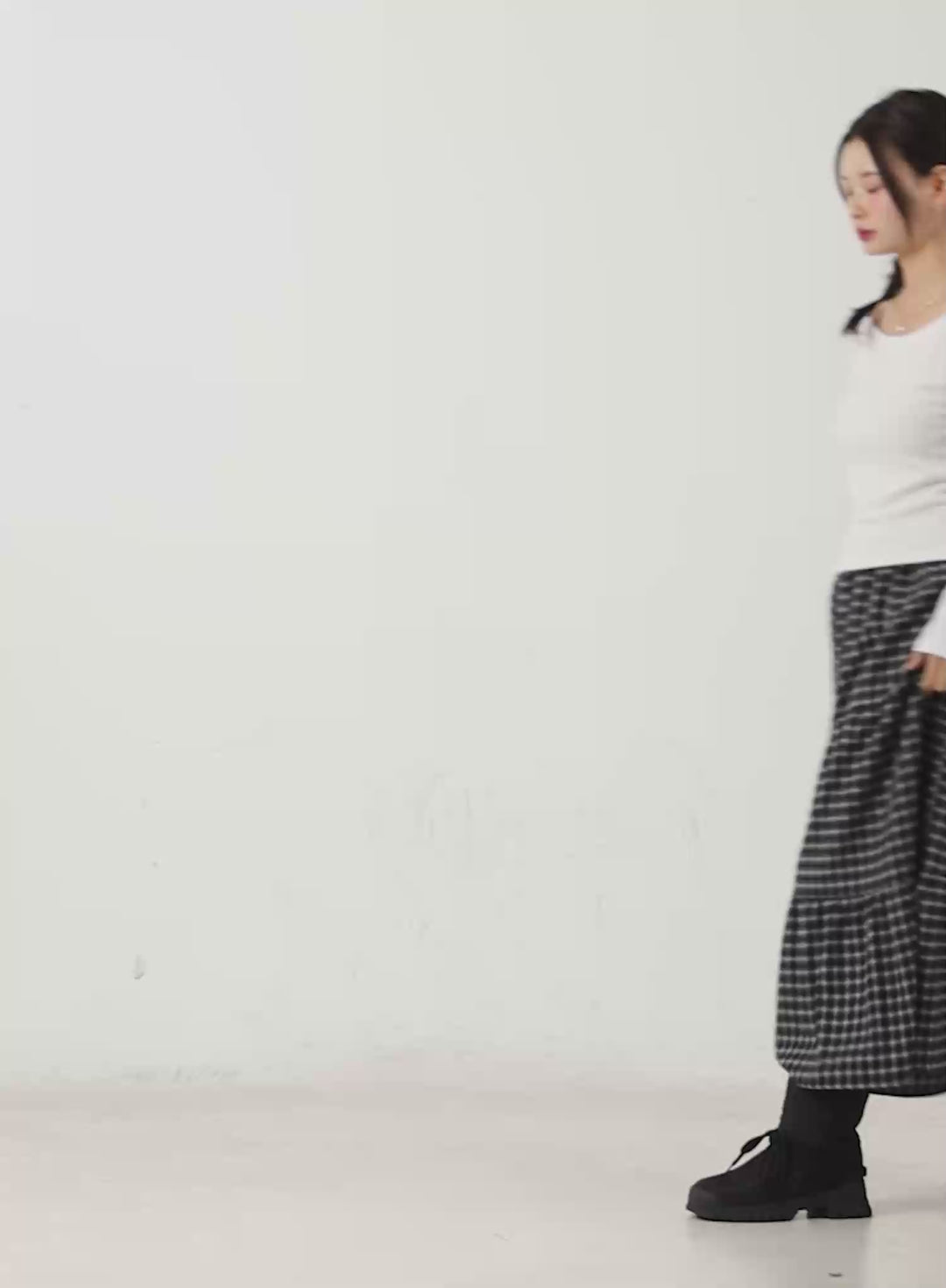 ruffled-plaid-mini-skirt-cn527 / Brown