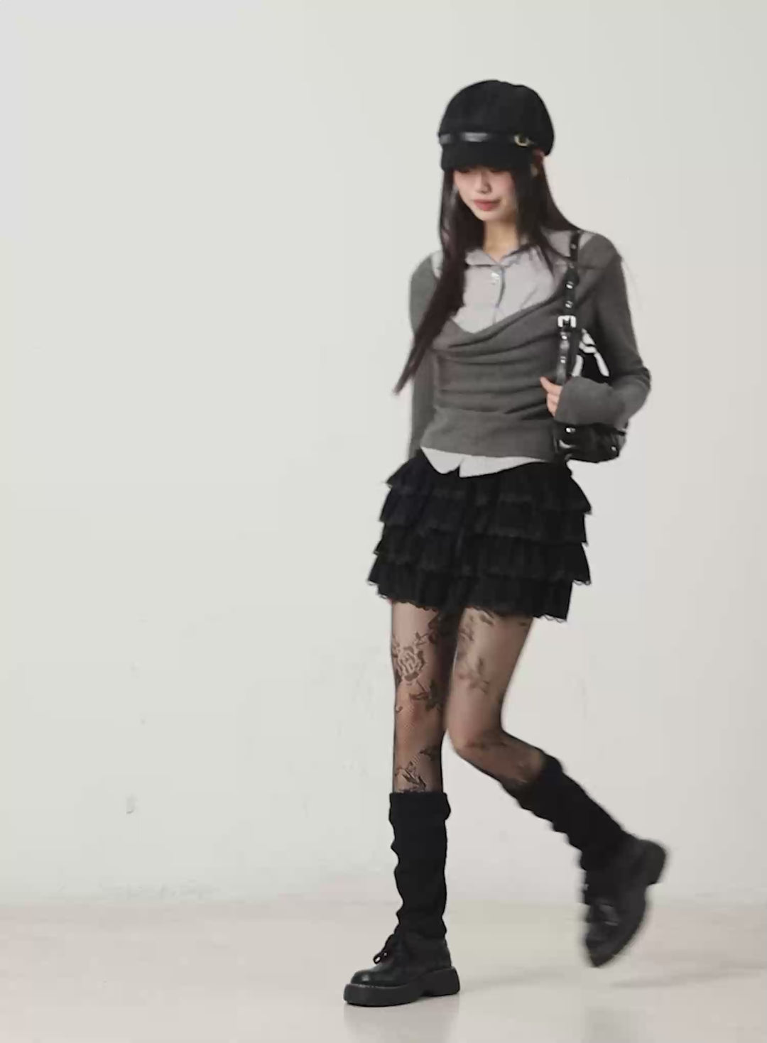 plaid-layered-wrap-mini-skirt-co516 / Black
