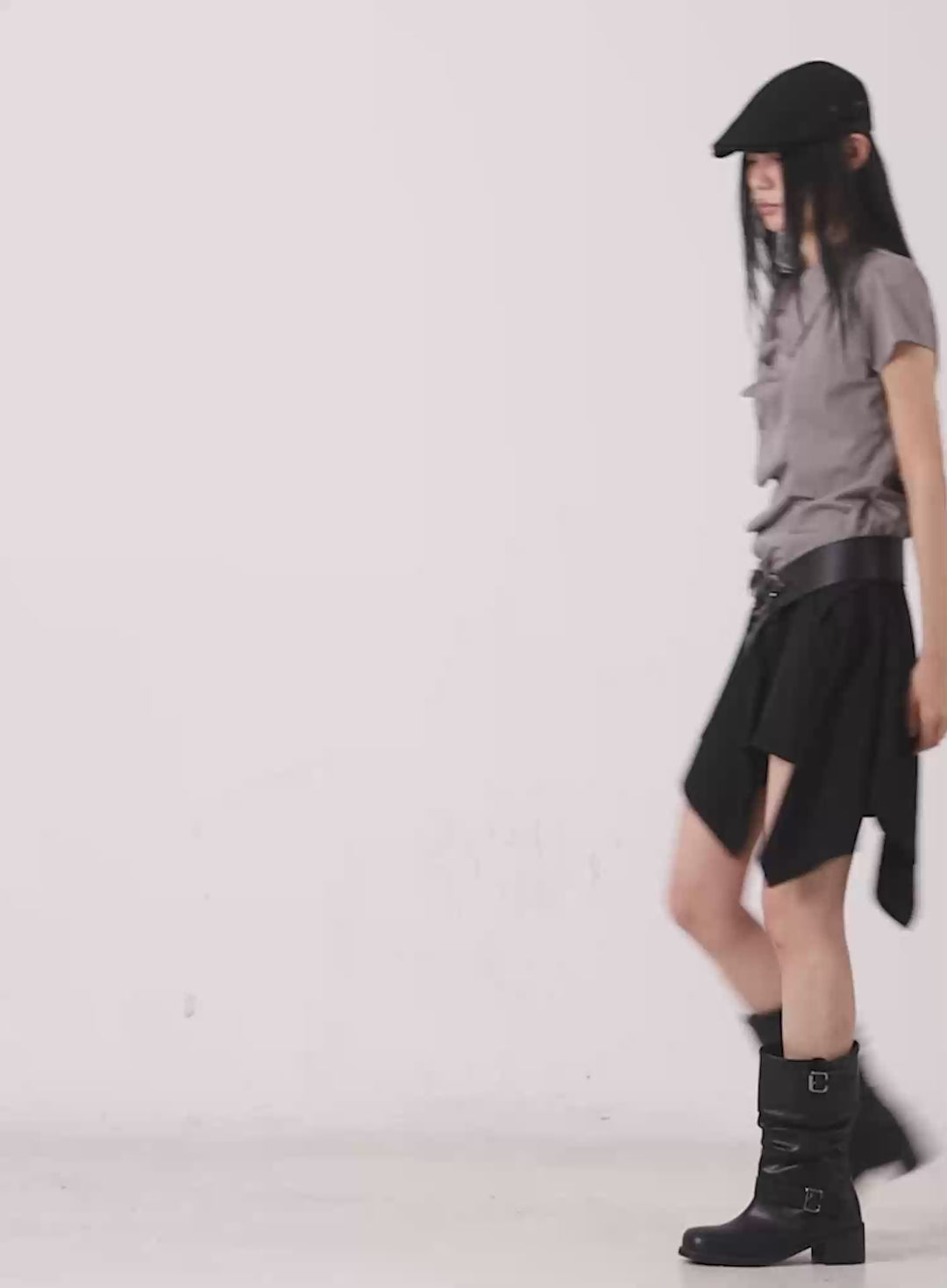 belted-mini-skort-cn519 / Dark gray