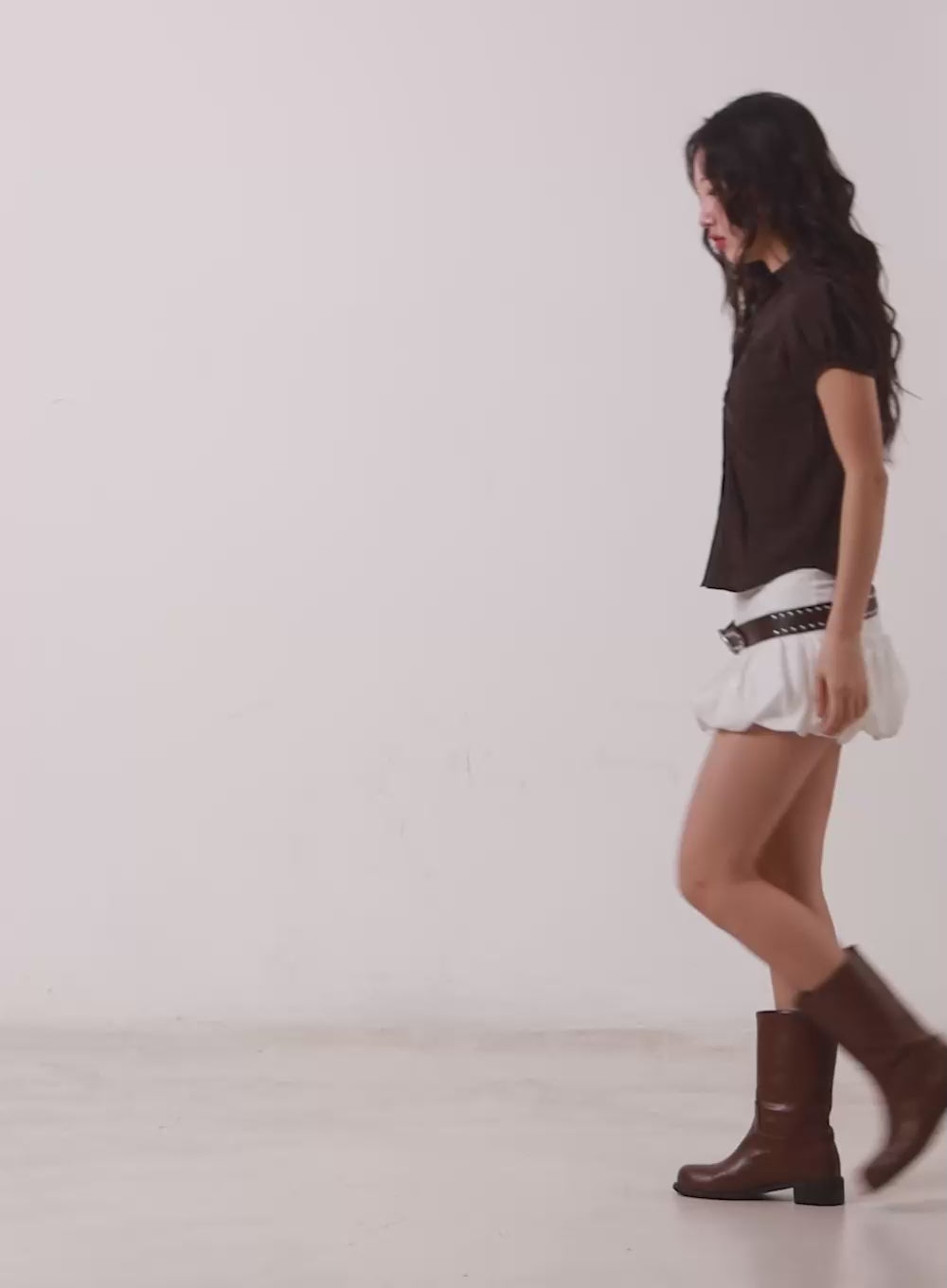 shirred-checkered-crop-collared-shirt-ca521 / Dark brown