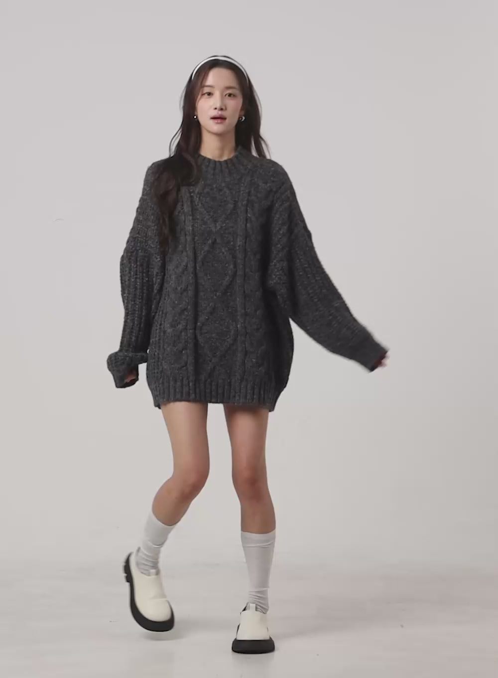 loose-fit-knit-mini-dress-oo421 / Dark gray