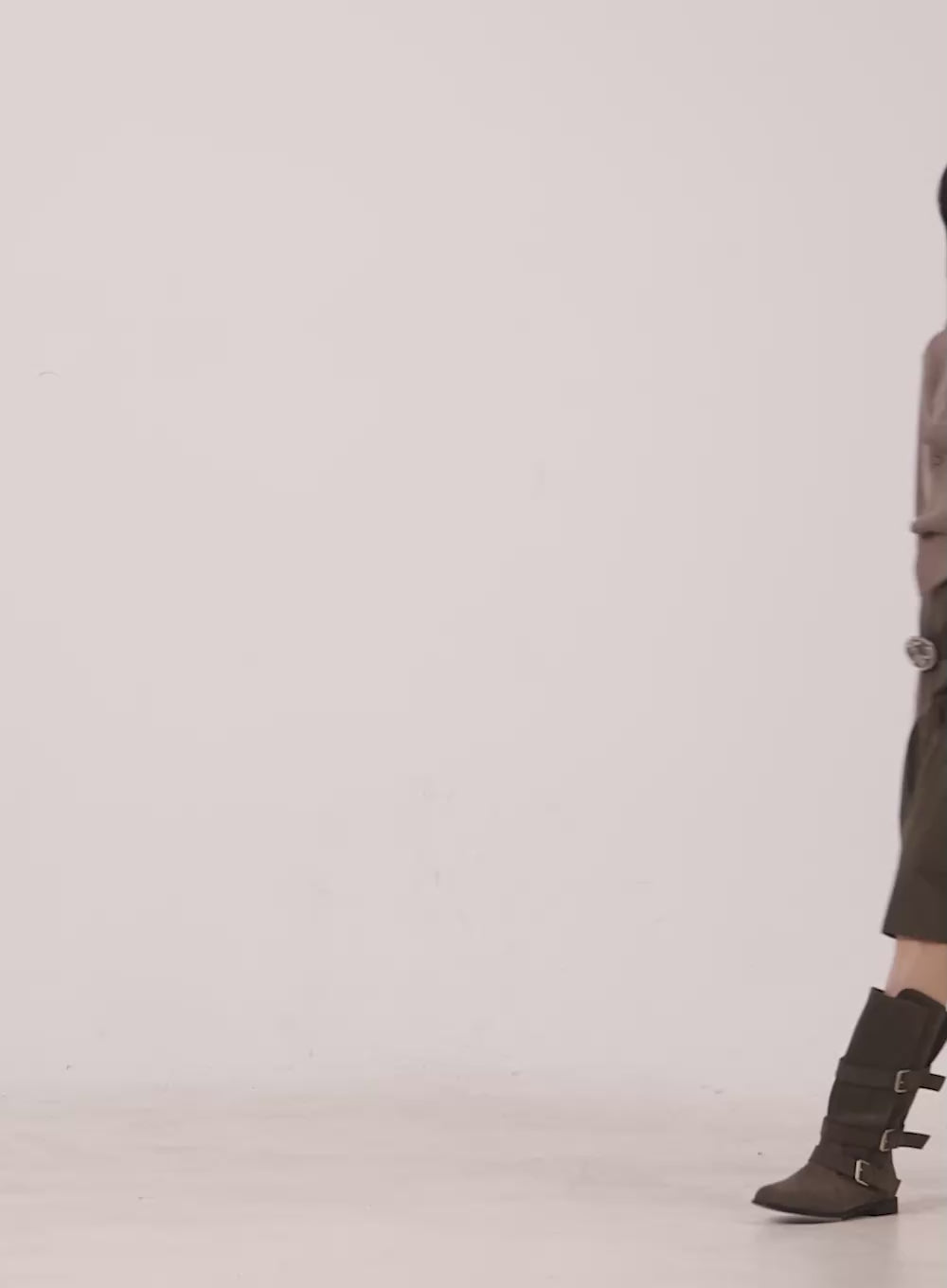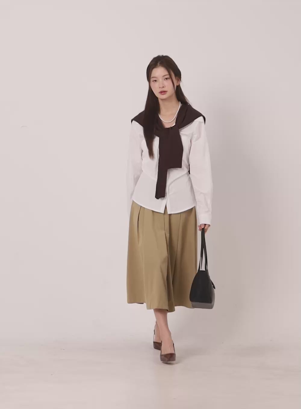 buttoned-pleated-strap-mini-skirt-cj520 / Beige