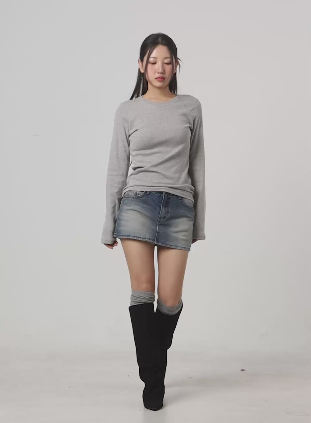 ribbon-strap-long-sleeve-top-cj520 / Gray