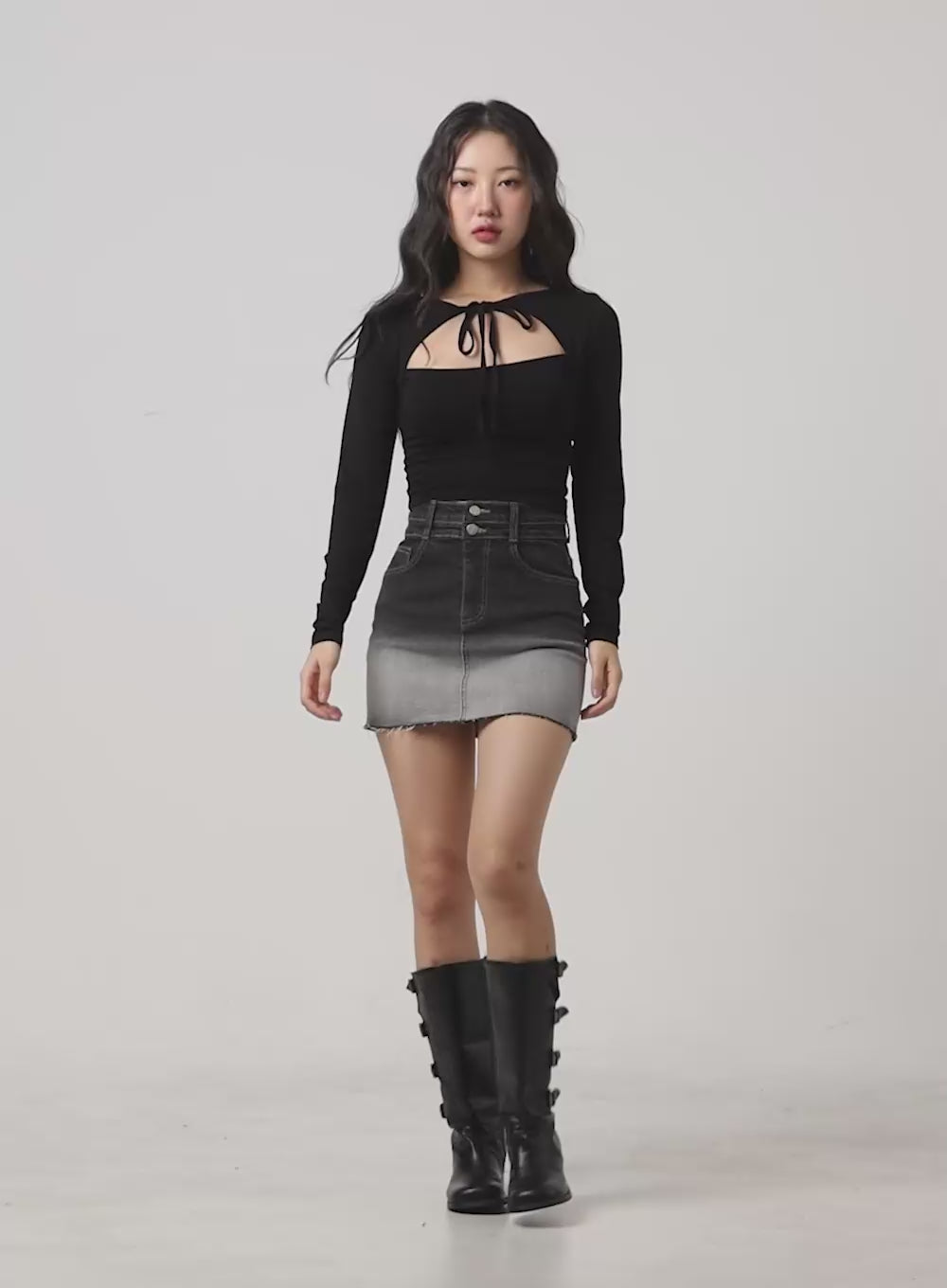 destroyed-hem-ombre-denim-mini-skirt-cg423 / Black