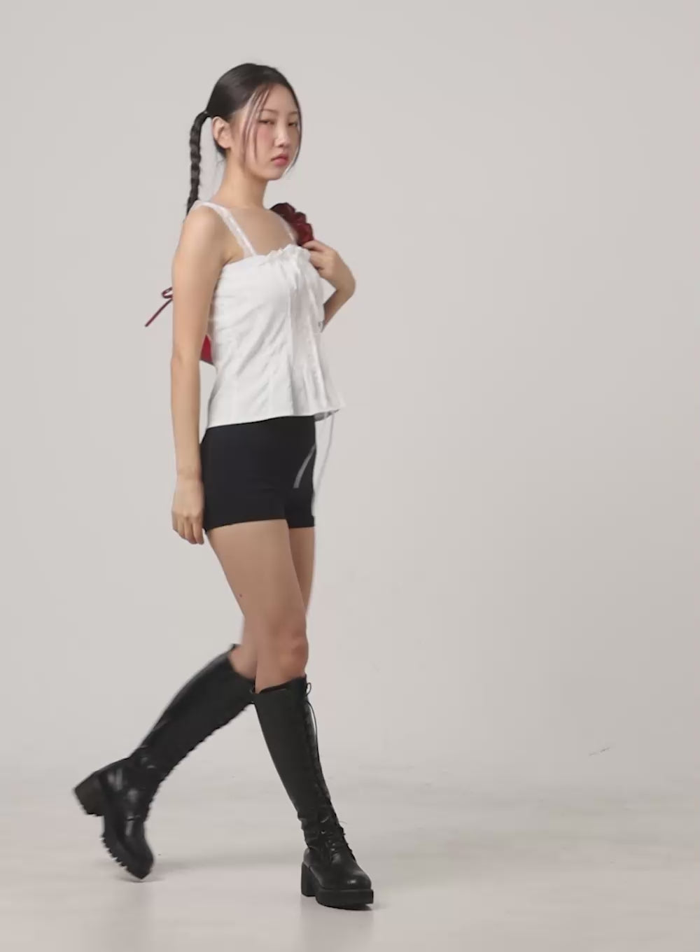 If you’re all about that soft, feminine vibe, this look is so you. A cropped red cardigan with a flirty polka-dot mini skirt? Adorbs! It’s perfect for snapping cute pics with your besties or just feeling cute while exchanging Galentine’s gifts. Throw in a bouquet of roses (for yourself, obviously), and you’re set for a day full of love, laughs, and unforgettable memories.