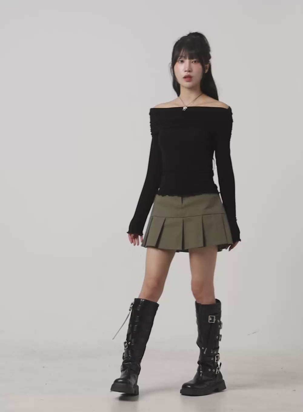 box-pleated-mini-skirt-ig405 / black