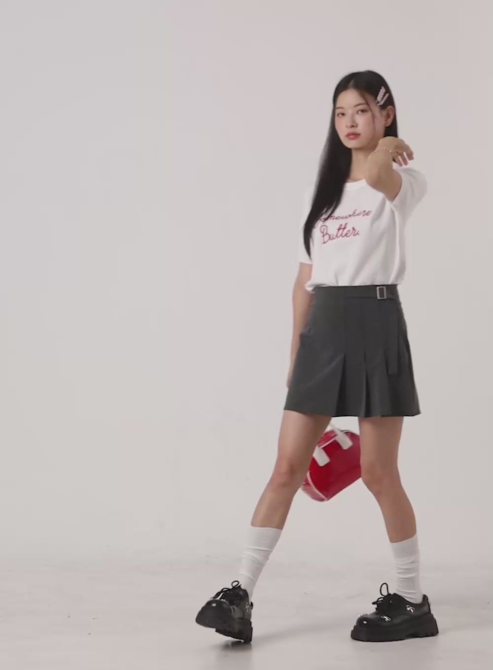 unbalanced-pleated-mini-skirt-cl412 / Gray