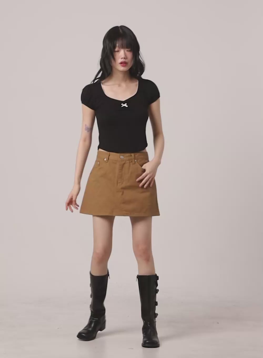 high-waist-basic-mini-skirt-ol423 / Light beige