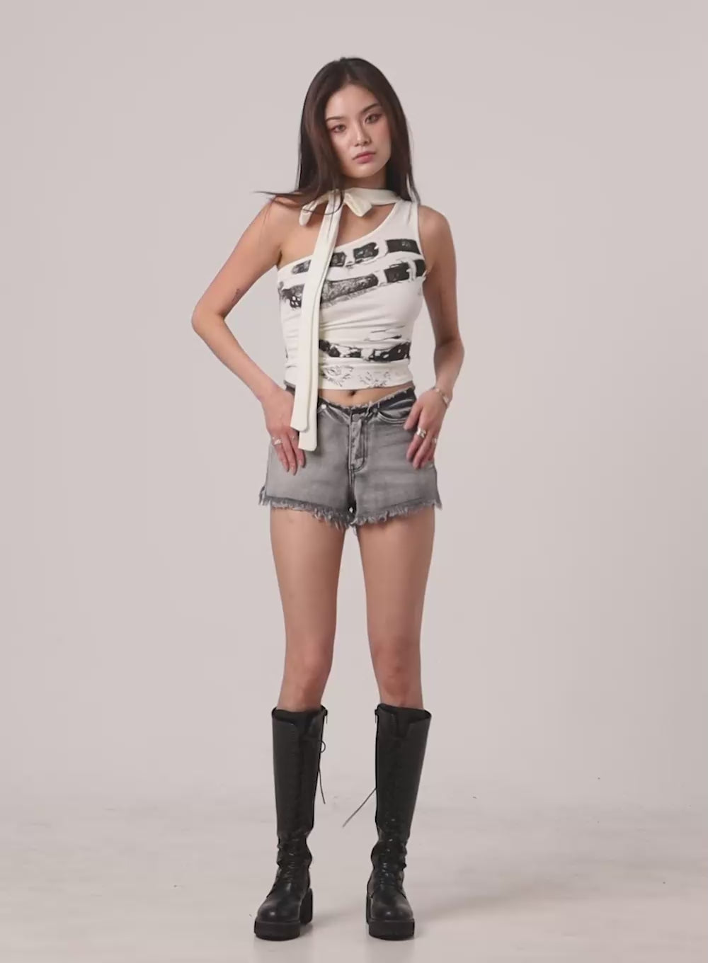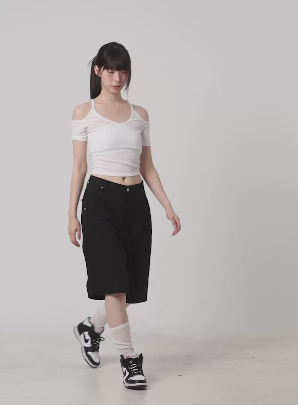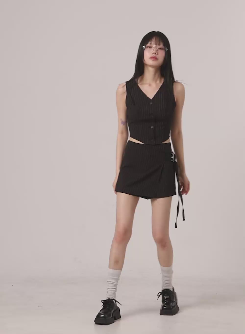 stripe-buckle-wrap-shorts-cl402 / Beige