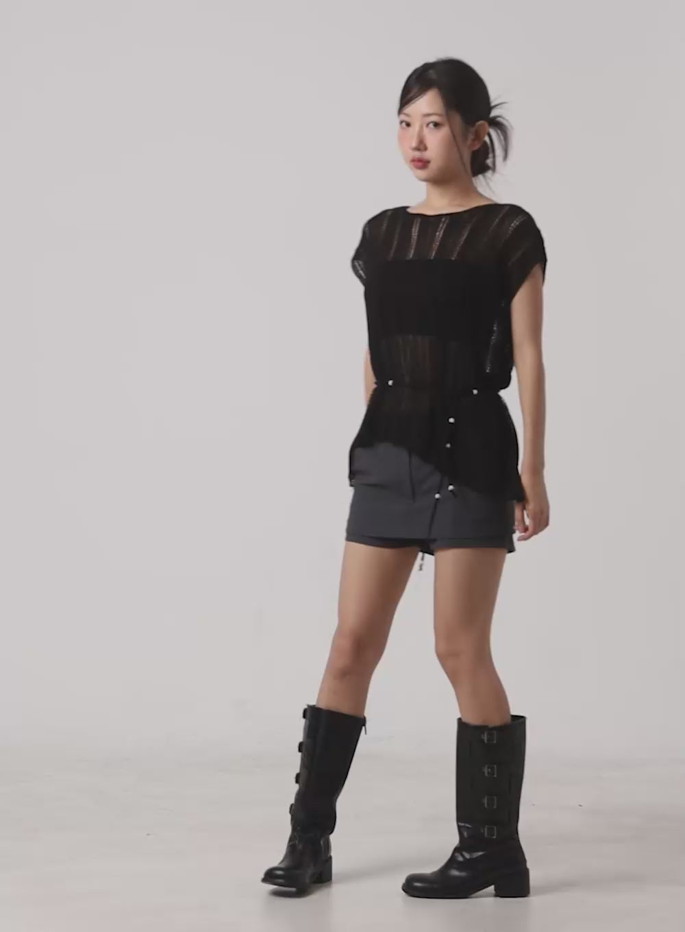 Sheer Long Sleeve Top & Halter Tank Top Set IJ402