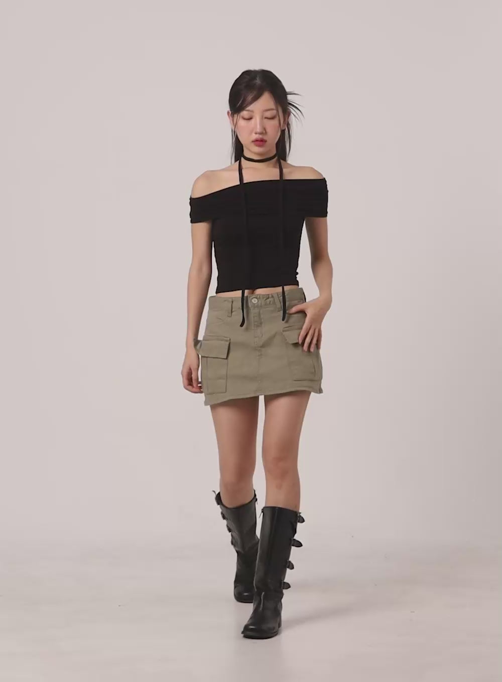 cargo-pocket-mini-skirt-cl401 / Dark green