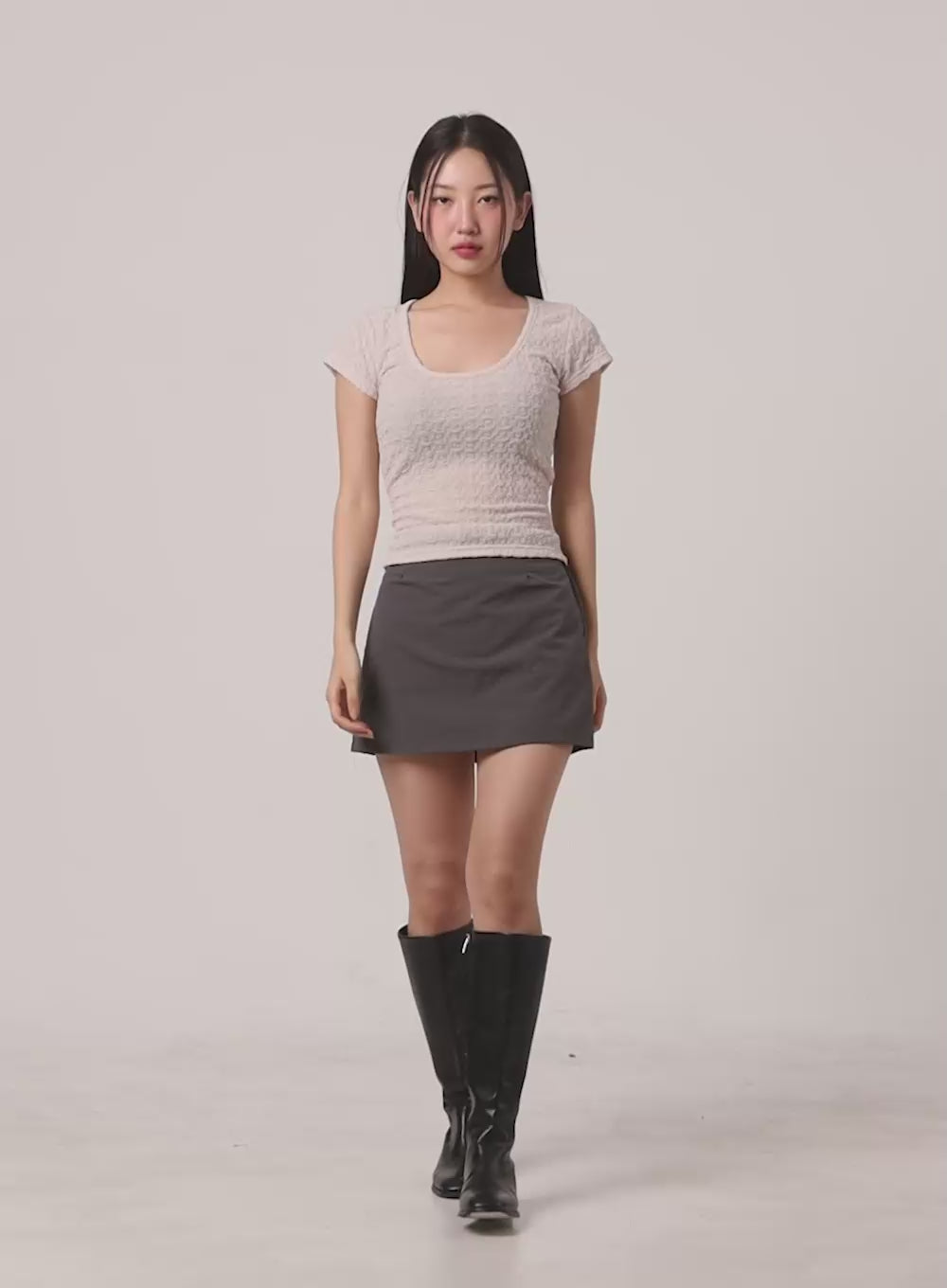 banded-pintuck-mini-skirt-ol417 / Dark gray