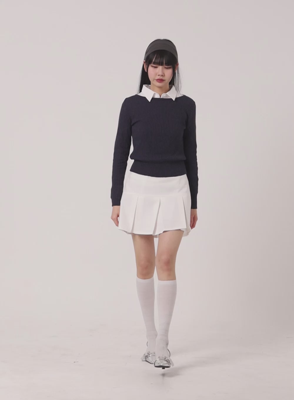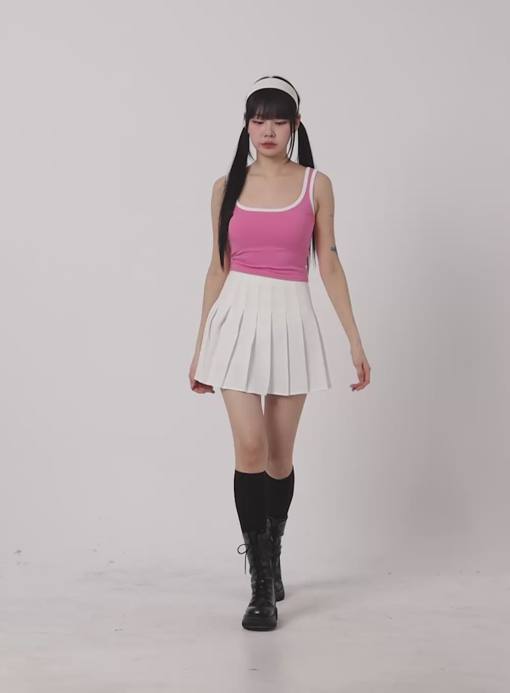 mesh-layered-flare-banded-mini-skirt-cm425 / White